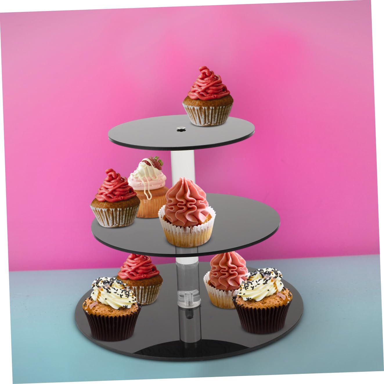 Package Include 1 x Set of Dessert Stand Characteristics - Size: Approx. 25.00X25.00X22.00cm/9.82X9.82X8.65in fruit serving tray. - Material: Acrylic Dinning Table Dessert Holder. - Color: Black fruit serving platter. - It can stand on the desktop stably, which is not easy to move and slide cake dessert stands. - Good bearing capacity, not easy to break and deform wedding cupcake stand. - Perfect for serving in the dining room or a sofa table for picnic, catered event, wedding, etc dessert candy display - Great for serving fruit, cupcakes, snacks, desserts, candies, appetizer, dried fruit, and other foods fruit stand for party. - It can be used for all types of events and parties, such as tea parties, showers, graduations, weddings, Christmas, Thanksgiving or home decoration tea party serving stand.Goods Informationdessert fruits display plate Easy to clean and store, it is suitable for home, office, hotel, restaurant, food shop, etc.Dessert Display Bracket Great for holding your snacks, fruit, cupcake, cake, etc.fruit display stand party This item is a dessert stand set, adoption of premium and acrylic material