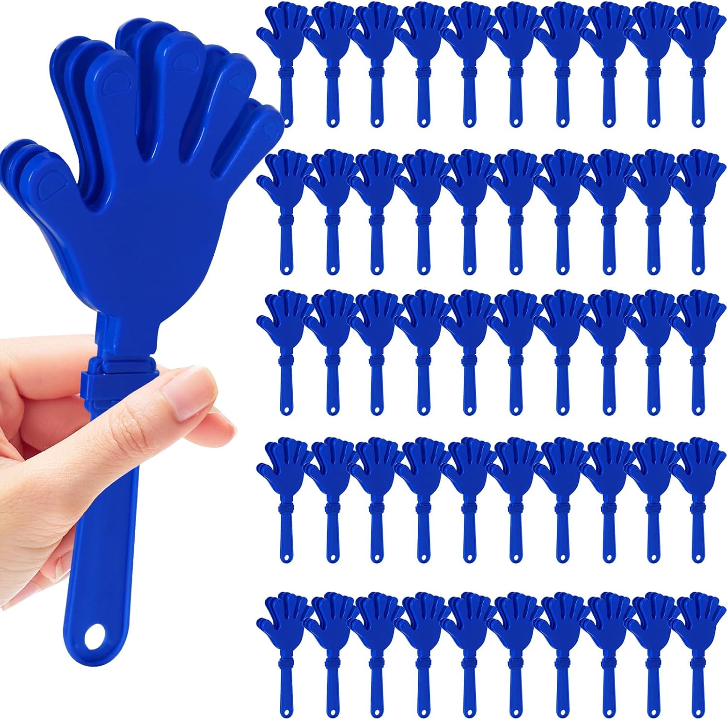 "Features: Party gift:Plastic noise makers can keep making noises, nice as gifts for your family, sports fans, and someone who like to hold party to make fun memories together Funny gift: You can give these party noisemakers to your family members, relatives, friend, classmates or colleagues on various occasions, and they will be delighted to receive such interesting gifts." Specifications: Material: Material: plastic Size: about 19 cm/ 7.5 inches long and 9 cm/ 3.5 inches wide Package includes:120 Pcs Hand Clappers Color:Blue Manual measurement, please allow slight errors on size. The color may exist a slight difference due to different screen displays. Suitable for people over 15 years old.