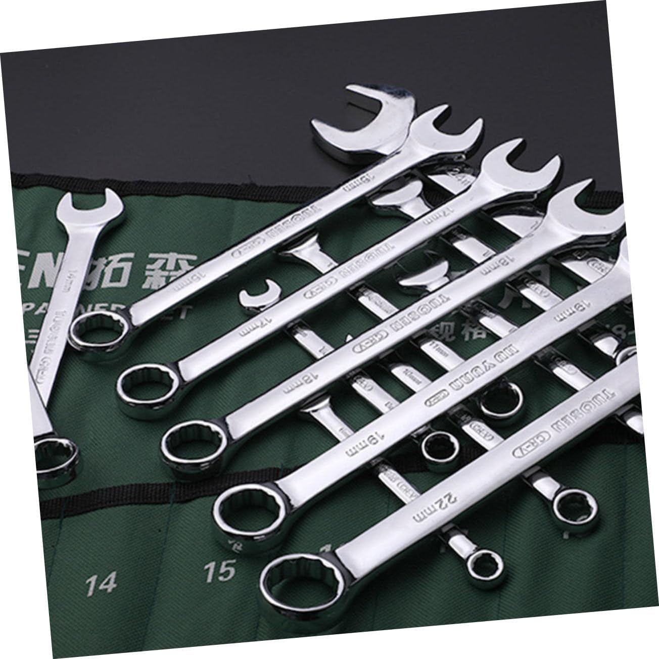 Package Include 14 x wrenches 1 x storage bag Features -Material: Steel Professional Wrench. -Color:Silver Wrench Supply -Packing Size: 35x25x5cm/13.78x9.84x1.97 inch Adjustable Spanner. -Comfortable handle provides soft, non-slip and firm grip Multifunctional Wrench. -Made of steel material, durable, high strength and Professional Spanner. -With a storage bag, portable to carry Repair Wrench. -Unique positive and negative regulation function allow you choice the rotate direction as you need, let you use it more freely Wrench Tool. -Ratchet works quickly and precisely in confined spaces, clockwise or counterclockwise Adjustable Wrench.Goods InformationWrench Tool This is a set of wrench, made of steel material, different sizes combination.Multifunctional Wrench Equipped with a storage bag, which can be hung when not using.Wrench Supply You can choose the right size for your situation.Adjustable Wrench Convenient and space saving, good for both outdoor and indoor using