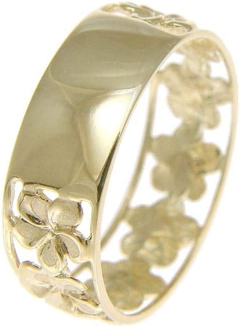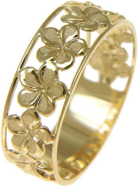 14K solid yellow gold Hawaiian plumeria flower lei ring 6.5mm size 4 to 10