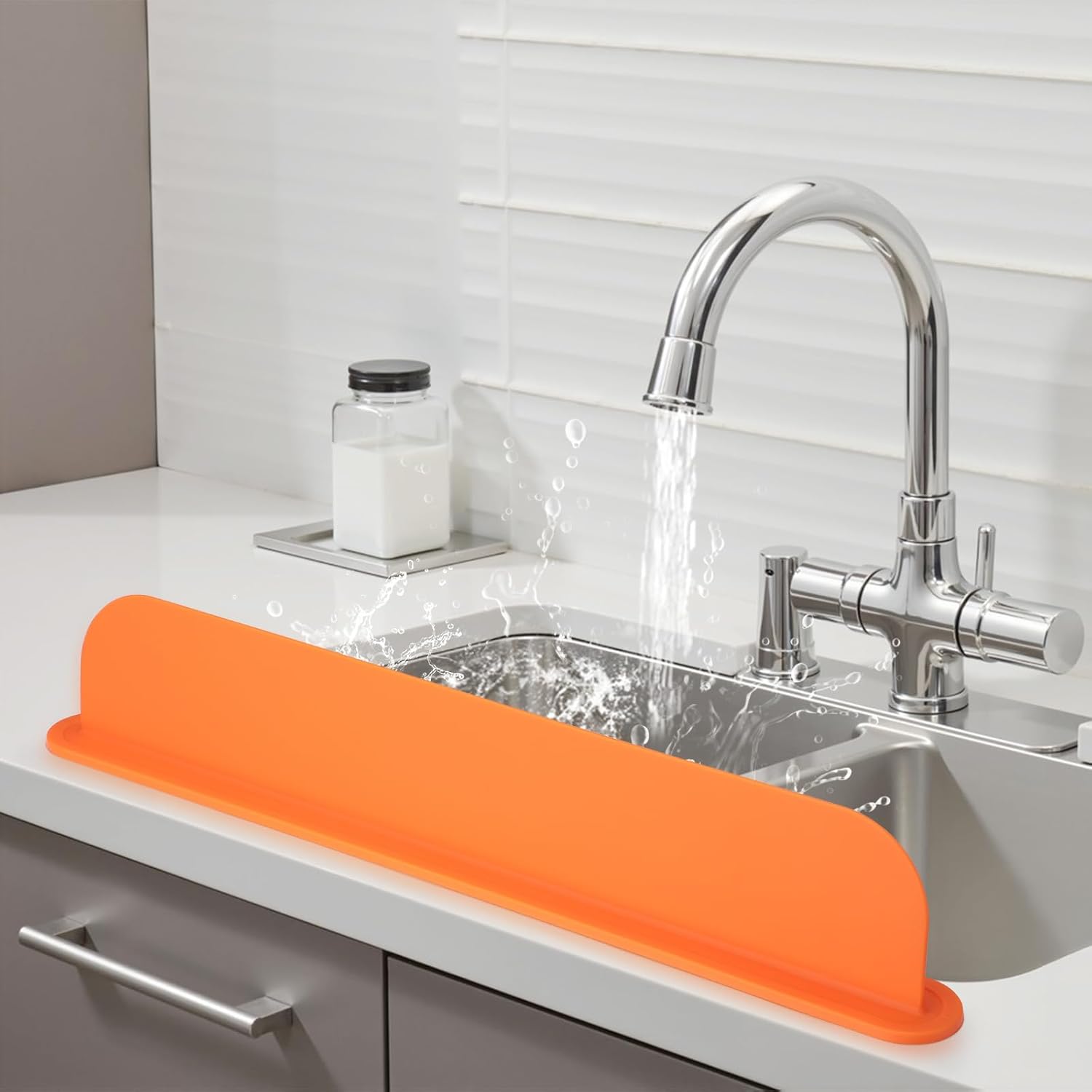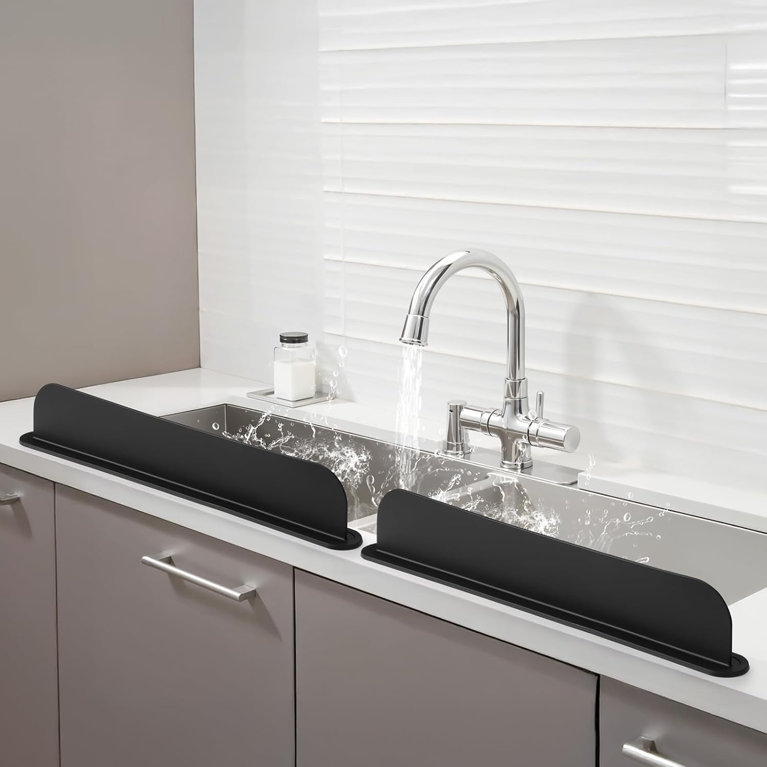 AIZOE Kitchen Sink Splash GuardPractical SizeSized at 19.29 x 2 x 3.3 inches (49 x 5 x 8.5 cm) , it provides enough coverage without affecting daily use. For longer sinks, combine multiple silicone sink baffle splash guards as needed.Durable & Easy to CleanMade of durable, soft and odor-free silicone that resists stains and buildup. Easy to maintain — simply wipe, rinse with soapy water, or place in the dishwasher.Strong Grip, No Tools RequiredThe sink water splash guard sticks firmly to smooth surfaces like marble, granite, or laminate. Just press it onto a clean, dry surface — no glue or tools needed.Keeps Surroundings Dry and CleanMinimizes water from reaching countertops, clothes, and floors. A practical splash guard for kitchen sink area, especially useful during washing or rinsing tasks.Versatile PlacementSuitable for the front, back, or sides of your sink. Works well in kitchens, bathrooms, laundry rooms, RVs, and so on.