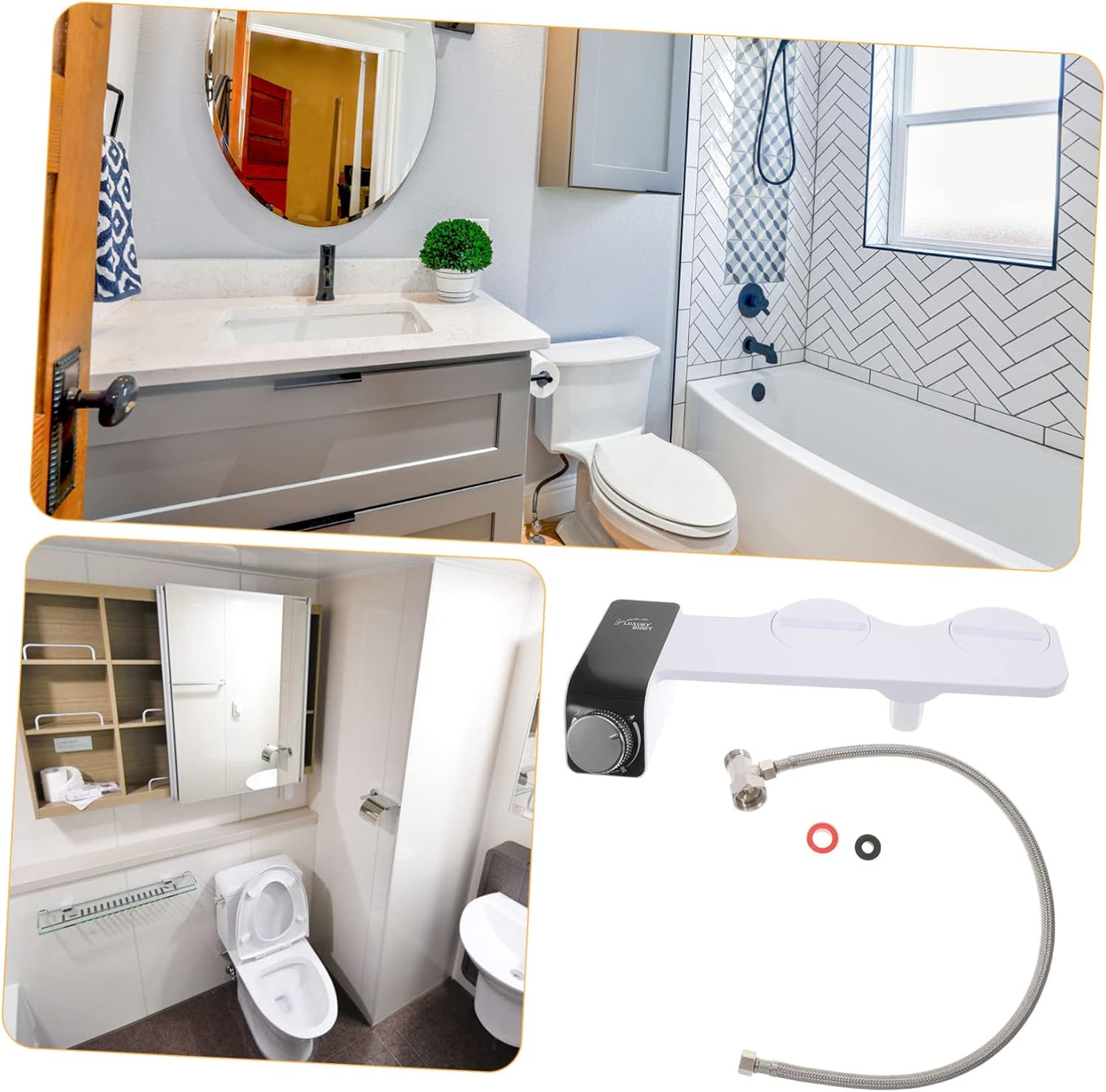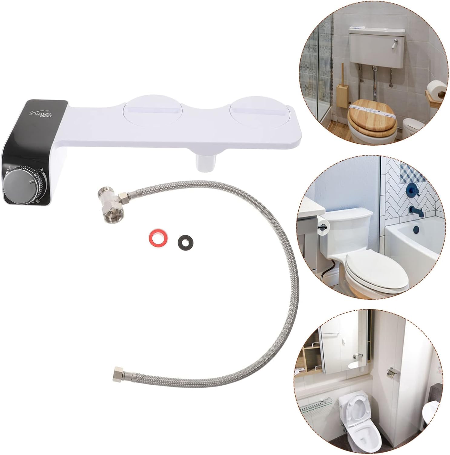 Package Include 1 x bracket 1 x hose 1 x connector 1 x fixing ring 1 x gasket Characteristics -Size:40.00X18.00X6.00cm,64.00X1.50X1.50cm,5.00X2.60X2.60cm,2.50X2.50X1.50cm,2.00X0.50X0.50cm/15.72X7.07X2.36in,25.15X0.59X0.59in,1.97X1.02X1.02in,0.98X0.98X0.59in,0.79X0.20X0.20in bidet toilet seat -Material:Plastic toilet bidet sprayer -Color:White toilet seat bidet -The bidet attachment makes you have a after every use toilet accessories. -Simple structure design, smooth surface, safe and reliable, not worry about hurting your hands bidet toilet attachment. -Non-electric bidet attachment can help you clean yourself more gently but more efficiently, useful and practical toilet sprayer attachment. -It is specially designed for women during their period and also great for pregnant mothers portable bidet for toilet. -It is a more clean yourself, keeping and keeping everyone clean after the toilet bidet toilet seat attachment.Goods Informationbidet attachment This is a very efficient and practical bidet attachment for toilet, which will meet your needs very well.bidet attachment for toilet warm water Are you looking for a professional and practical bidet attachment for toilet? Our products will be your choice.toilet seat bidet Reasonable dual nozzles design makes it easy to install and use, bringing you more convenience