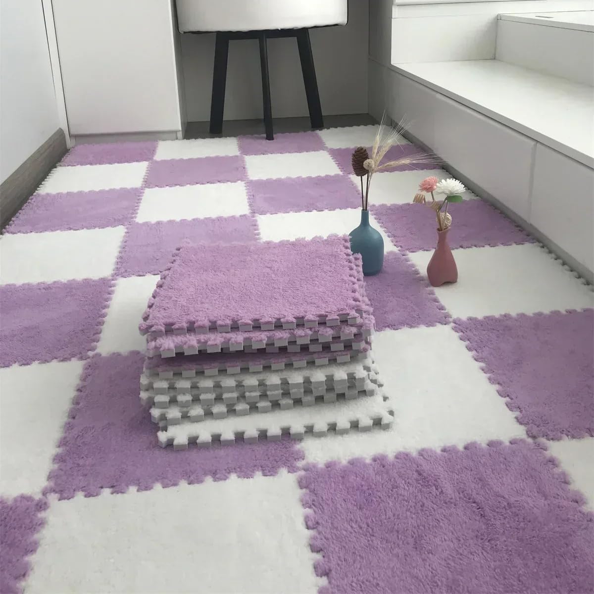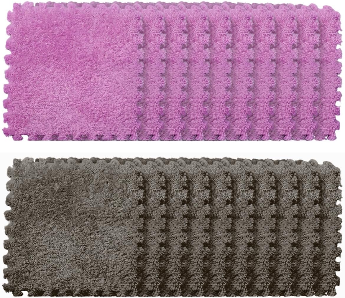 Descriptions: The surface is fluffy velvet made of cotton and polyester, warm and comfortable. The bottom is high-density EVA foam provides excellent support and a cushion effect to all hard floor surfaces. protects floors or people from scratches and dings. Different colors are available for you to customize your space, bringing you a beautiful and warm ground. If you find that the color is different, it may be that the orientation of the fluff is inconsistent. You can use a vacuum cleaner or wash directly with water. It is not recommended to use a washing machine. Material: EVA Foam, Plush Product Size: 30x30CM / 12"x12" Quantity: 10/20 Shape: Square Package Includes: 1 Set Interlocking Carpet Tiles for Bedroom Living Room NOTE: 1.There is 2-3% difference according to manual measurement. Please check the size carefully before you buy the item. 2.Due to Different Monitor, the color may have difference.