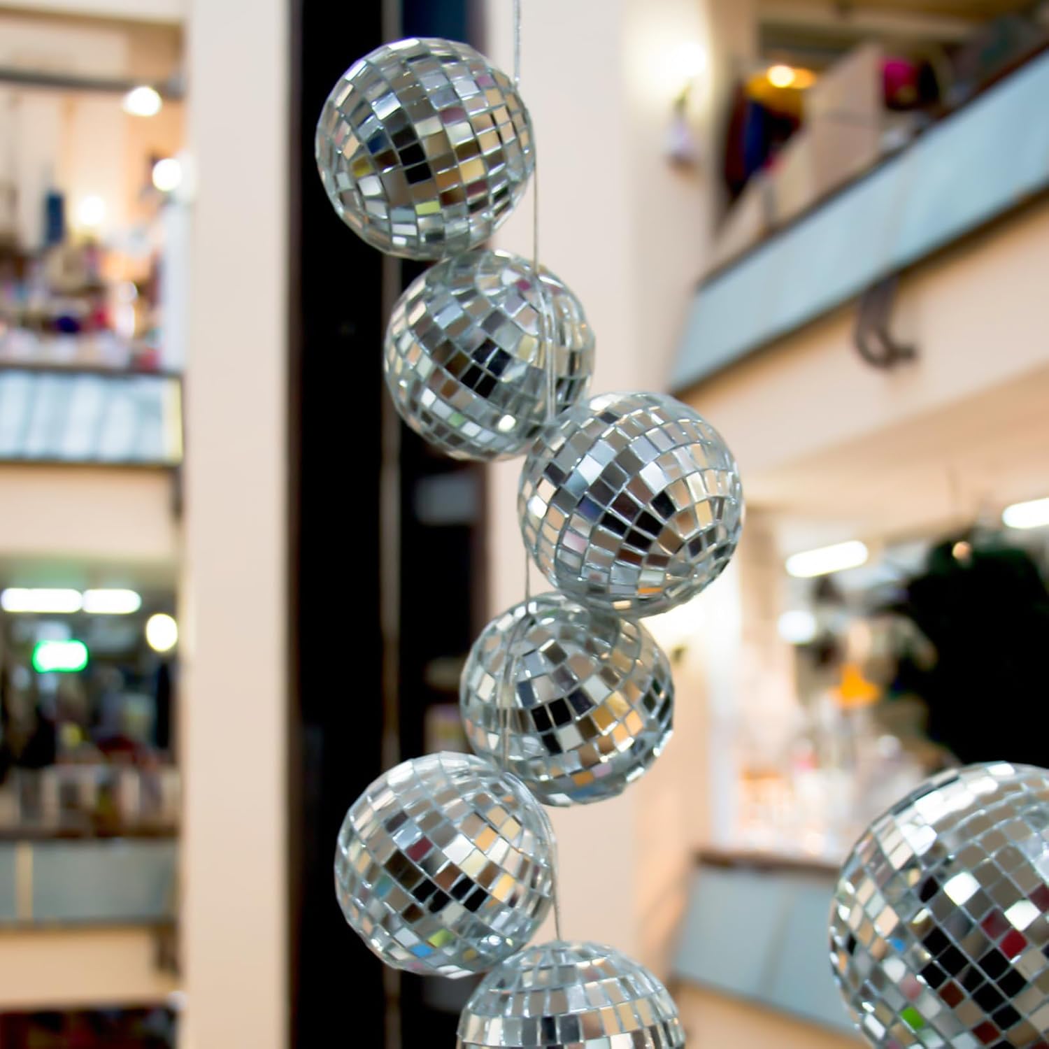 Features: Command attention at your next event with the dazzling brilliance of our disco ball decorations. The reflective surfaces of them catch and play with light, providing the perfect backdrop for unforgettable photo opportunities. Enjoy an easy, hassle-free setup with our disco party supplies. Designed for convenience, they are lightweight and simple to use. Effortlessly create an instant glamorous setting that lets you focus on enjoying your event without stress. Specifications: Material: Ball: polyethylene foam Color: silver Size: Table runner: about 11.8 x 108 inches/ 30 x 274 cm Ball: about 1.1 inches/ 3 cm, 2 inches/ 5 cm, 2.3 inches/ 6 cm, 3.1 inches/ 8 cm Package includes: 2 x Glitter disco party table runner 24 x Hanging disco ball Notes: Manual measurement, please allow slight errors on size. The color may exist a slight difference due to different screen displays.