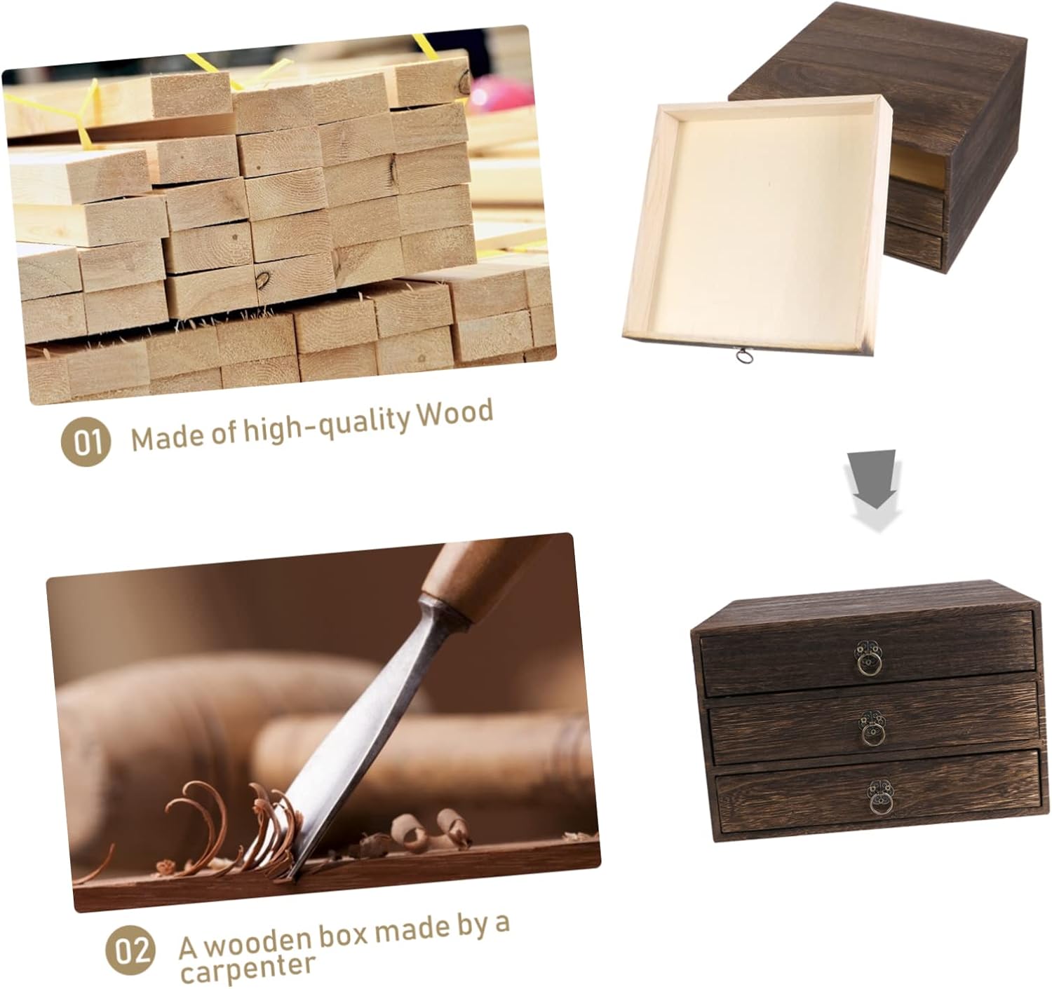 3 Layer Wooden Desktop Drawers Vintage Desktop Storage Box Desk Drawer Box Wood Organizer Shallow Drawer Cab