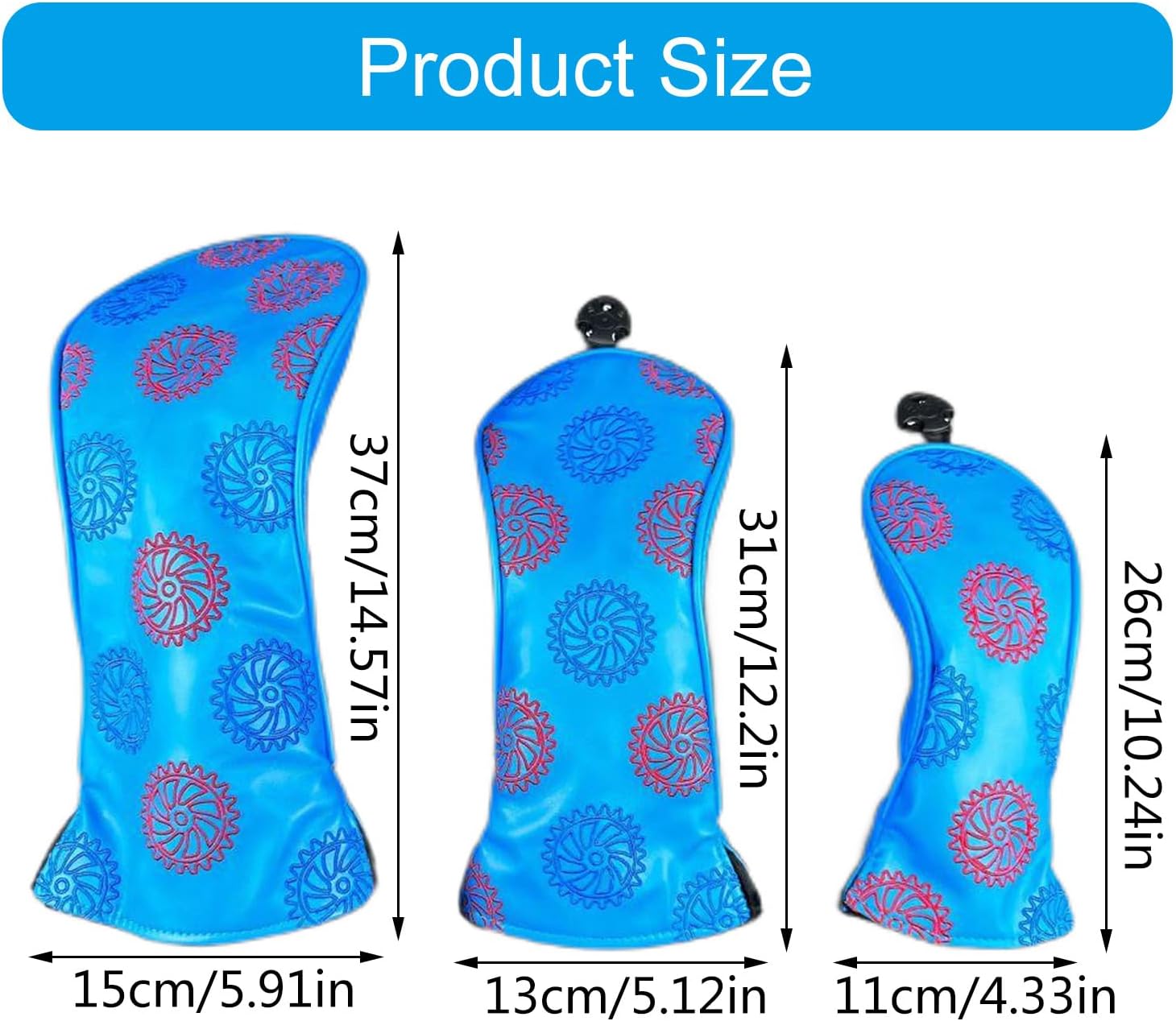 3Pcs Waterproofs Golfs Headcover PU Leather Golfs Club Head Covers Gear Pattern Fairways Wood Head Covers Golfs AccessoriesFeatures:Make of PU leather materials,Golfs club head Covers is Waterproofs, portable and Enduring. The plush lining of club Covers is more effective in protecting your clubs from dent or damage that may occur during game or travel.With elastic band, the Covers fit tightly and is not easy to fall down, so you not have to worry about losing your club Covers. The Fairways and Hybrids head Covers have a rotatable tip to keep your Golfs clubs organized, easily rotate these Covers in your wood.Suitable for Golfs Enthusiasts, it is the and necessary Equipment. And they are Great for Golfers.Specifications:Materials: PULarge size: about 37x15cm/14.57x5.91inchMediums size: about 31x13cm/12.2x5.12inchSmall size: about 26x11cm/10.24x4.33inchPackage Includes:3pcs Golfs Club Head CoversNote:Please allow 1-2cm errors due to manual measurement, make sure that you do not mind before you order. Due to the difference between different monitors, the picture may not reflect the actual color of the item.