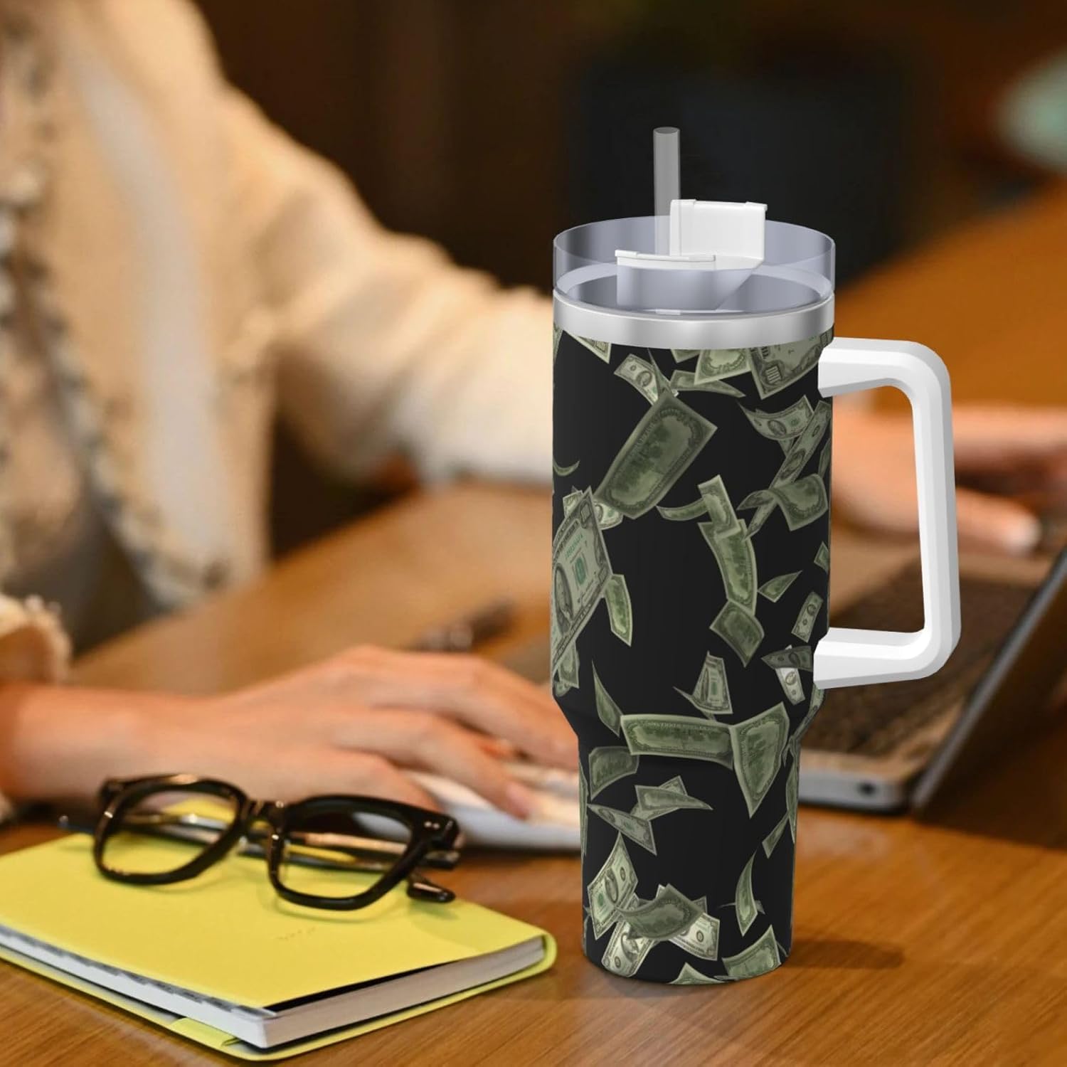 This Dollar Sign Money Print Ice Bully Cup features a double layer stainless steel design that can be used for a long time without rusting. The lid has good sealing to prevent water from overflowing, and it is easy to unscrew for filling and cleaning. It can keep water, coffee, or drinks warm or cool for hours and is suitable for travel, camping, and driving.