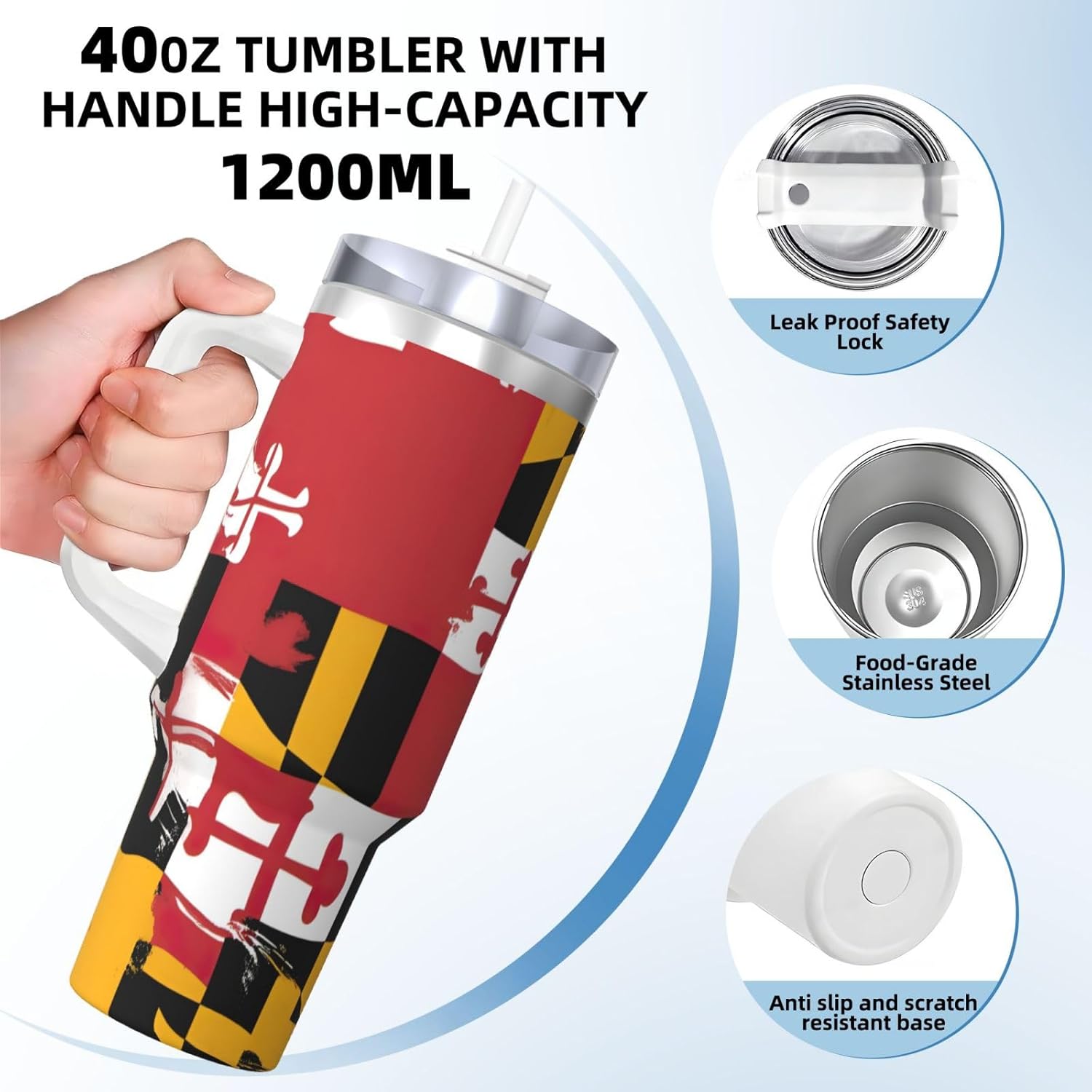 This maryland flag Print Ice Bully Cup features a double layer stainless steel design that can be used for a long time without rusting. The lid has good sealing to prevent water from overflowing, and it is easy to unscrew for filling and cleaning. It can keep water, coffee, or drinks warm or cool for hours and is suitable for travel, camping, and driving.