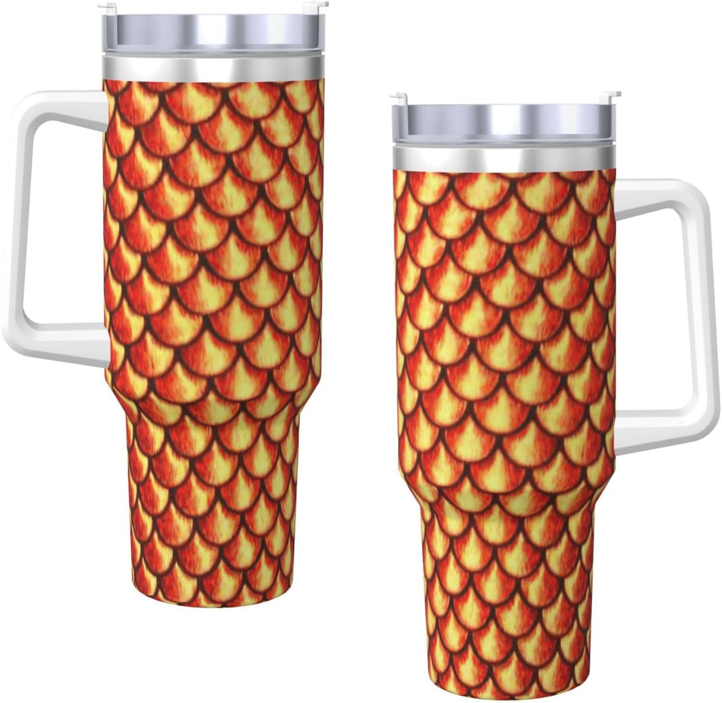 This red fish scale Print Ice Bully Cup features a double layer stainless steel design that can be used for a long time without rusting. The lid has good sealing to prevent water from overflowing, and it is easy to unscrew for filling and cleaning. It can keep water, coffee, or drinks warm or cool for hours and is suitable for travel, camping, and driving.