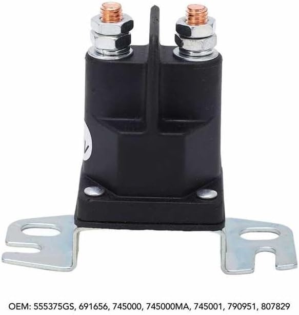 691656 12V Flexible 2 Terminals Solenoid Starter for Lawn MowerFeatures:1. OEM Number: Starter solenoid relay replace part number are 555375GS, 691656, 745000, 745000MA, 745001, 790951, 807829.2. Excellent Performance: 12V working voltage, high efficiency, sensitive and flexible, and restore the best use of the lawn mower.3. Durable Construction: High strength metal construction for maximum durability, safe and durable, not easy to break and has long service life.4. Outstanding Features: Professional manufacturing, exquisite workmanship, high accuracy, stable performance and high reliability.5. Unique Design: Direct replacement for the old or broken relay, strong strength metal material give you a convenient using experience.Specifications:Item Type: Solenoid StarterMaterial: MetalOEM: 555375GS, 691656, 745000, 745000MA, 745001, 790951, 807829Operating Voltage: 12VTerminal :2 terminalsDescriptions: Replace and upgrade the old relay to restore the best statePackage List:1 x Solenoid StarterNote:1.Please double check the part number of your item, matching information is for reference only.2. unsure of the item, please before buying to avoid unnecessary , thanks!4. The images shown are not the actual item and are for your reference only.5. SERVICE is provided by the carrier and excludes weekends and holidays. s may vary, particularly during the holiday season.7. Due to stock status and time differences, choose to your item from our first available warehouse for . 8. We seller are not in charge of import , buyer is responsible for that. Any caused by this is unreasonable. 9. BR buyer please provide the cpf or cnpj, it will be better for you to get it more quickly. thanks and Item specific