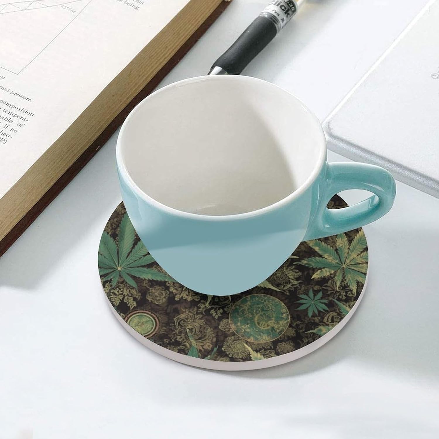 Transform your daily hydration into a stylish and protective ritual with our Cute Ceramic Coasters with Cork BottomDrink Coasters for Home Cup Mats for Table Rustic Coasters Round Coasters Unique Coasters Vintage Coasters Art Teacher Gifts Round Drink Coasters for Hot Cups Funny Coasters Outdoor Coasters for Patio Table Waterproof Bar Coasters Non-Slip Table Coasters Absorbent Coasters Ceramic Car Coasters for Cup Holders Ceramic Cup Holder Coaster for Car Cool Coasters Pretty Coasters White Wine Coasters Housewarming Gifts CoastersSuitable Size:Heat resistant coasters for drinks arr crafted from ceramic and finished with a natural cork base, each coaster is as practical as it is sustainable. The 4.1-inch round size is perfectly proportioned to sit under a variety of glassware - from your favorite coffee mug and ceramic teacup to tall glasses of iced tea or bottles of beer.Double Protection:The heat-resistant ceramic top acts as a shield, guarding your cherished wood tables, kitchen countertops, and office desks against hot beverages, unsightly water rings, and condensation . Meanwhile, the soft, non-slip cork bottom plays a dual role: it prevents the tea coasters from sliding around when you reach for your drink, and it ensures your furniture remains free from scratches and scuffs.Multi Purpose: Whether you're decorating a coffee table in the living room, adding a functional touch to a home office, or setting up a bar cart for entertaining, these decorative coasters are the perfect blend of utility and subtle style.Material: Ceramic & CorkSize: 4.1 inches (Diameter)Care: Wipe clean with a damp cloth.Designed for the modern home, these heat resistant cup mats blend functionality with minimalist aesthetics to keep your surfaces pristine.