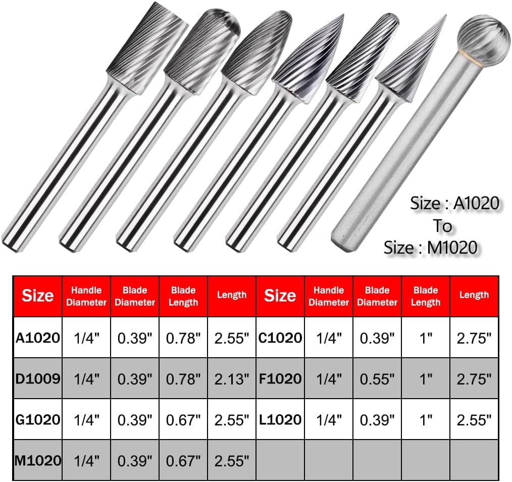 Discover the world of crafting possibilities with our 7-Piece Set of Hard Alloy Deburring. These 1/4 Inch handle diameter aluminum rotary files are your ideal partner for tasks involving pattern grinding machines, drill bits, metal engraving, and carving. These cutting burrs, made with heat-treated tungsten carbide, offer exceptional durability and reliable performance. The product features easy usability making it perfect for both professionals and beginners. Choose from a variety of models, all neatly packed in a sturdy plastic case for secure storage. Experience the versatility of our product for wide-ranging applications including welding, chamfering, casting, grinding, and milling.