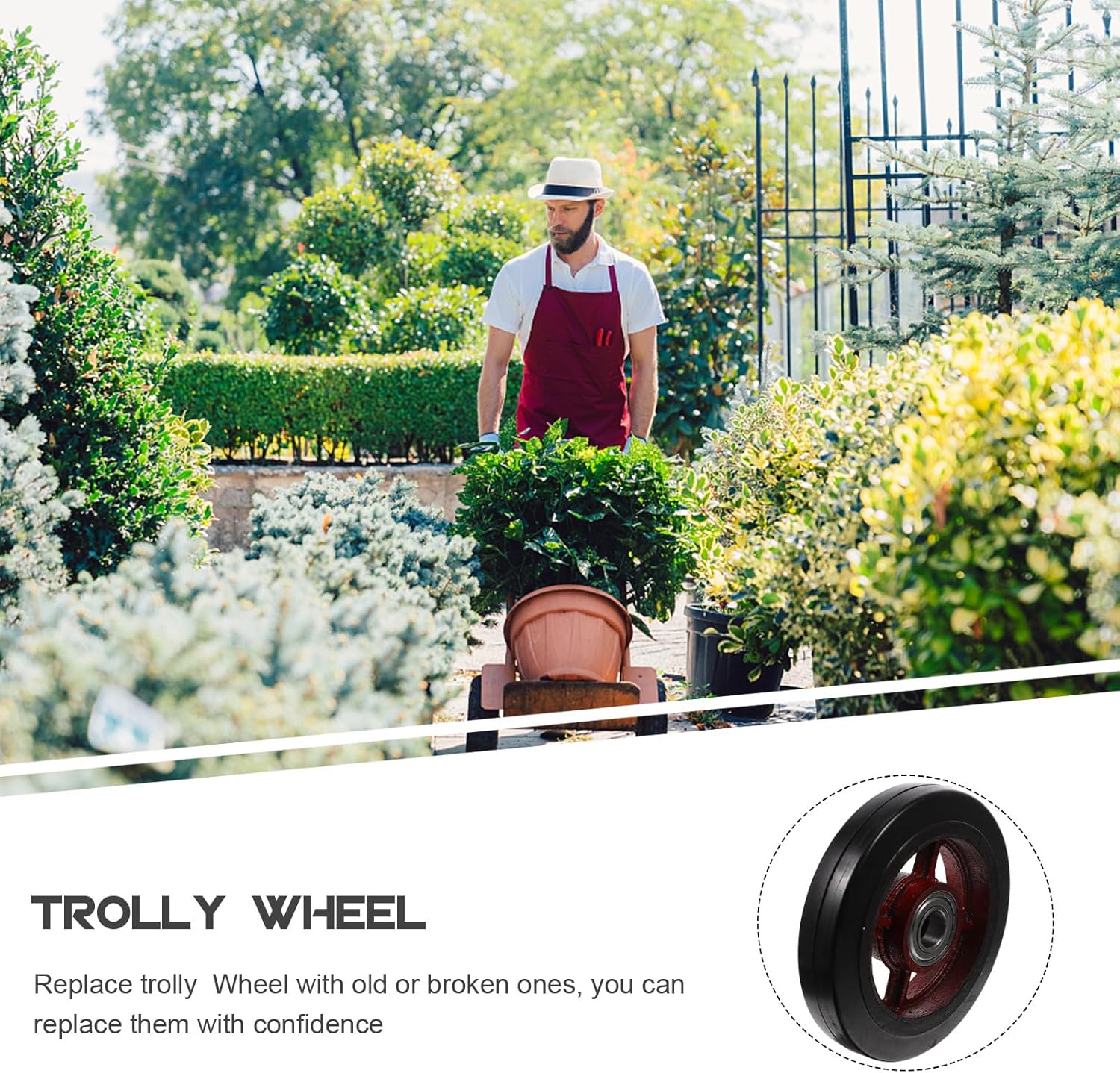 Package List 1 x trolly wheel Features -Material:Iron, rubber -Size:19.00X19.00X4.00cm/7.47X7.47X1.57in -Color:Black -Product Info:Garden trailer wheels - Rubber and metal material, good tensile strength, and tear strength, the secure its quality of it. - Replace trolly Wheel with old or broken ones, you can replace them with confidence heavy duty wheels. - Easy to install, good resilience and high hardness, not easy to break, providing you a good service yard cart wheel. - Very suitable as a for friends and relatives who is interesting in garden works, what a thoughtful it will be household trolly wheel. - Adopt for durable use, you can use it to finish all of your garden transport work.Goods Descriptiongarden cart tires Besides, it can also be a useful tool to help you complete garden work.wheels for trolley This trolly Wheel is made of high-grade rubber and metal material with strong wear resistance and .solid rubber wheel It will decorate your trolly in a fun style.heavy duty wheels It rolls very smoothly, very durable and suitable for trolly riding