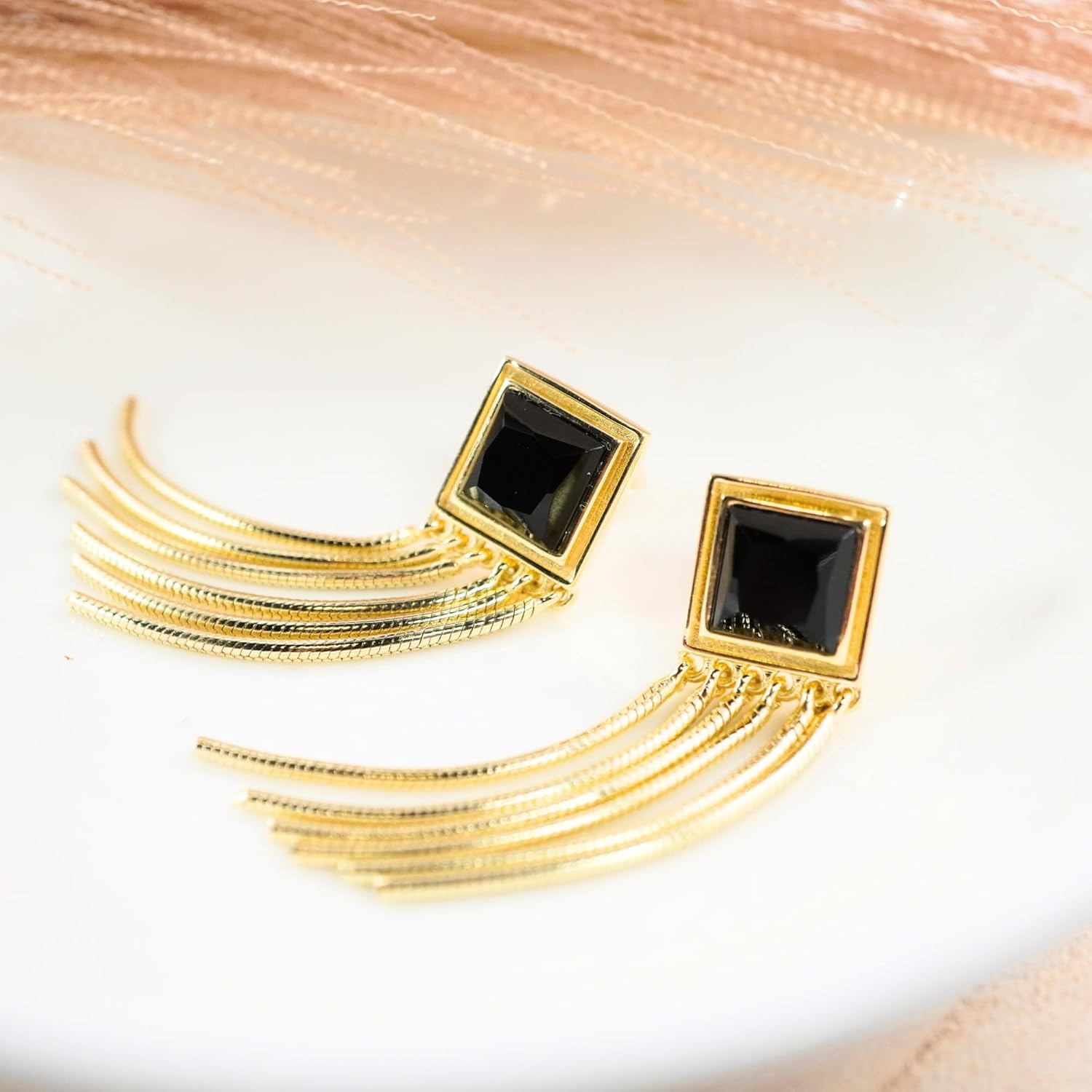 Elevate your jewelry game with these sophisticated stud earrings featuring a clean, geometric square design. Crafted from genuine 925 sterling silver and luxuriously plated with 18K gold, each earring showcases a bold 7mm square-cut gemstone that adds a touch of refined elegance. The square stud anchors six slender gold-toned chain tassels, creating dynamic movement and modern flair. Perfect for formal occasions or statement everyday looks, these earrings combine timeless materials with contemporary style. Lightweight, secure, and fashion-forward — a standout piece in any collection.