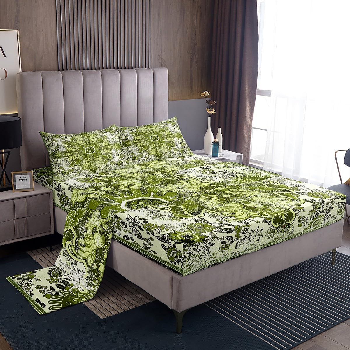 Size Information Twin size: 1 Fitted Sheet 39"x75"x16", 1 Flat Sheet 96"x66", 1 Pillowcase 20"x30". Full size: 1 Fitted Sheet 54"x75"x16", 1 Flat Sheet 96"x81", 2 Pillowcases 20"x30". Queen size: 1 Fitted Sheet 60"x80"x16", 1 Flat Sheet 102"x90", 2 Pillowcases 20"x30". King size: 1 Fitted Sheet 78"x80"x16", 1 Flat Sheet 106"x90", 2 Pillowcases 20"x36". Versatility We have many kinds of styles for you to choose. You can easily find a product that suits the style of your room. The item is not only Suitable for your home, bedroom, guest room, living room, etc or rv, your families, friends, relatives, boyfriend, girlfriend. Modern Design The luxury aesthetic bedding sheets are made reactive printing and dyeing process. The pattern is clear, the color is and bright, which will not fade after repeated washing. Personalized As a manufacturer of digital printed home textiles, we follow current trends and bring you the latest and stylish home textile products. The item will make the room decorated in exquisite taste.