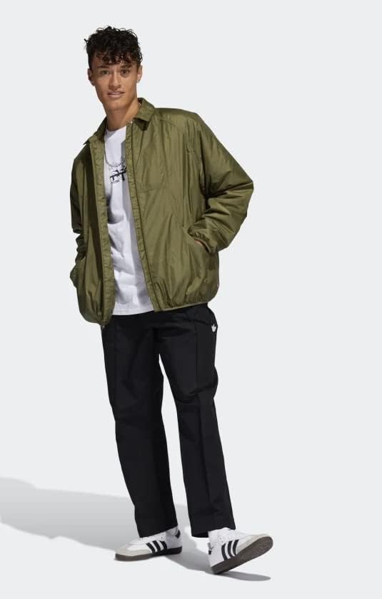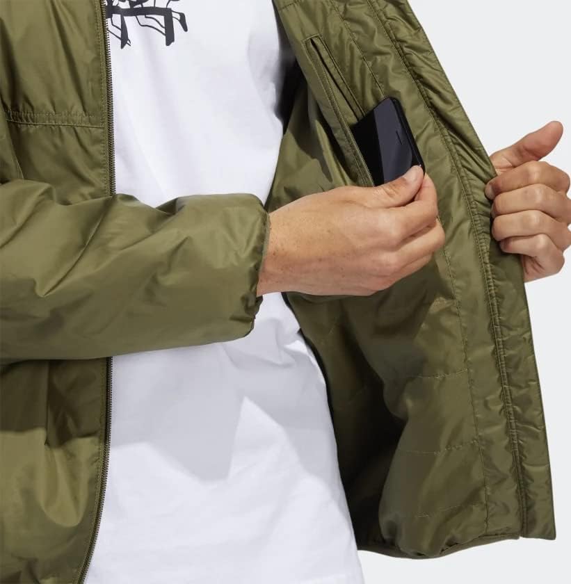 Upping the game and function of a skateboarding classic, the adidas Skateboarding Insulated Coach Jacket provides practical performance and staple style. The design features PrimaLoft insulation, a two-way zip and an internal zip pocket. The UNITEFIT sizing structure is created to fit all sizes, genders, and forms. This product is made with Primegreen, a series of high-performance recycled materials. 50% of upper is recycled content. No virgin polyester. Relaxed fit Shell: 100% recycled polyester ripstop Lining: 100% recycled polyester plain weave PrimaLoft insulation Internal zip pocket Two-way front zip Primegreen Imported Product color: Focus Olive Product code: GR8793