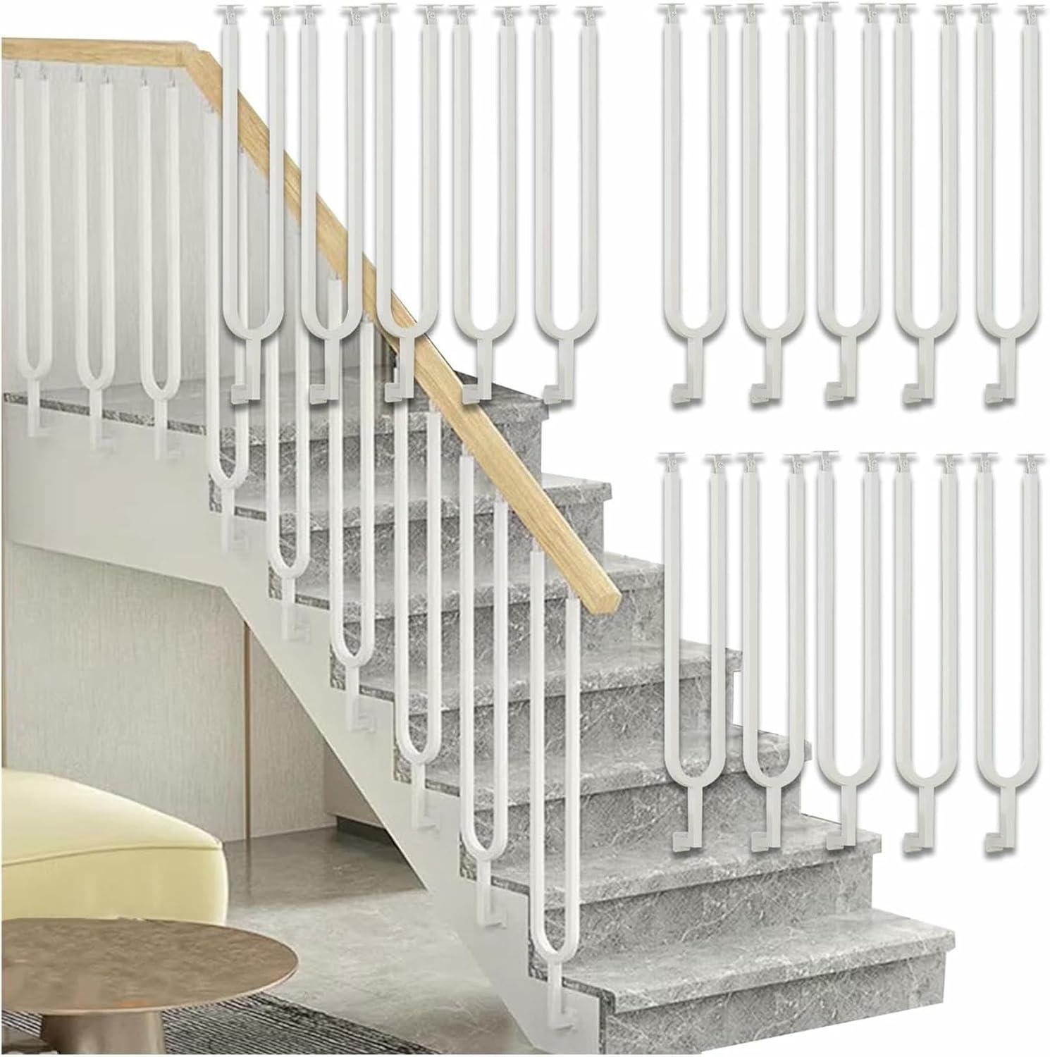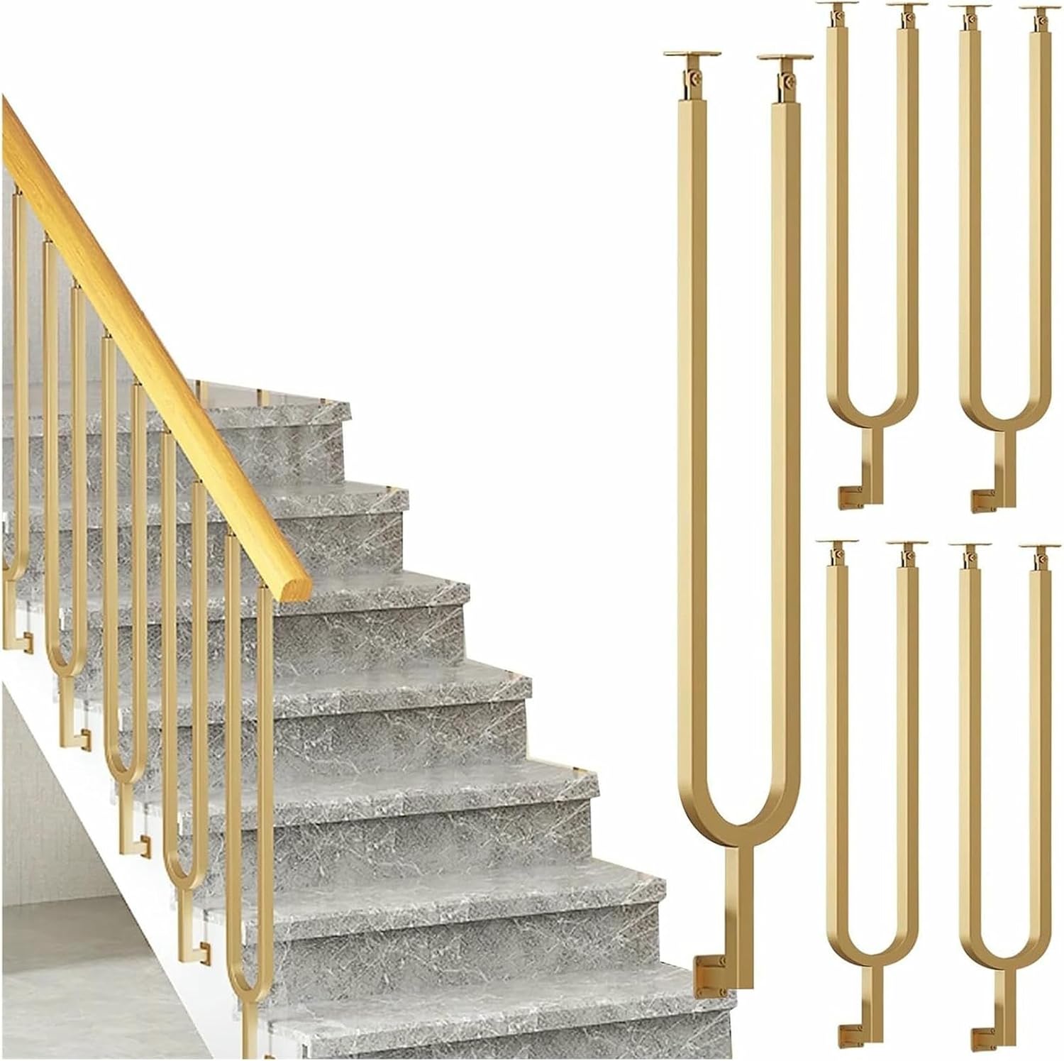 Description: -----Are you building a railing for your home, porch or villas?-----Are you looking for a railing project that will decorate your home as well as provide safety and security for your family?Hurry and take home one of our stair railing spindle! It upgrades your staircase or hallway in a modern and elegant way.Specification:Material: Metal IronHeight: CustomPost Size: 4/5×4/5inBase Size: 1 3/5×1 3/5inWall Distance: 1 1/5inPost Wall Thick: 1.2mmPost Width: 3 1/2inShape: U-shapeSuitable for: Indoor/Attic/BalconyHandrail are not included and will need to be purchased separately by you.Package Includes:1× Railing Spindles/1× Handrail( Includes mounting accessories )Tips:1. The main picture is a scene picture, just to show the installation effect, handrails and columns need to be ordered separately.2. If you don't know how to order, please consult customer service.