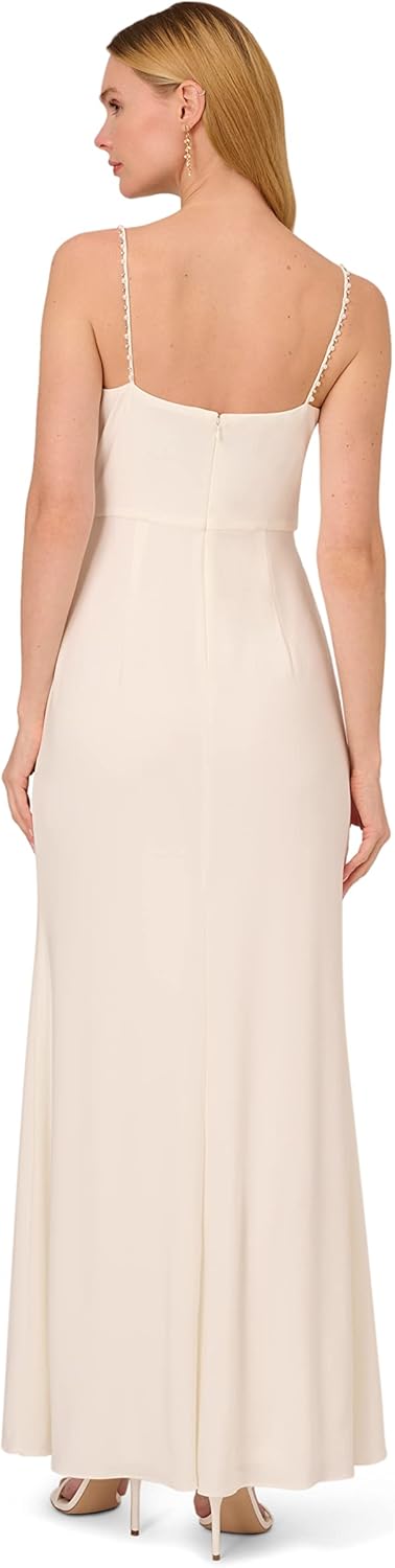 This is a beautiful shimmering foiled jacquard jersey in a surplus wrap side draped mermaid gown with 3/4 sleeves.