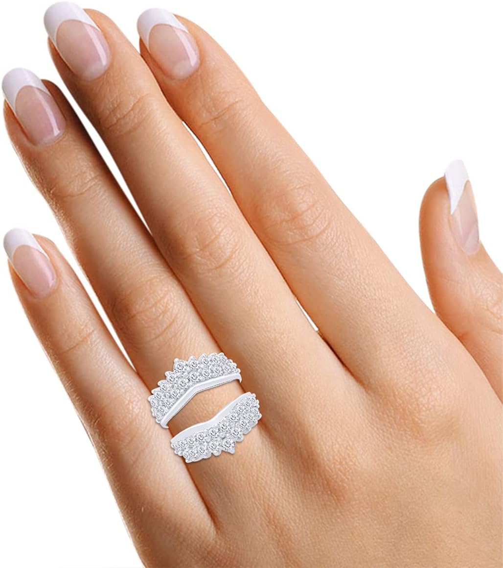AFFY 4 Carat Round Cut Cubic Zirconia Double Row Solitaire Enhancer Guard Ring in 14k White Gold Over Sterling Silver