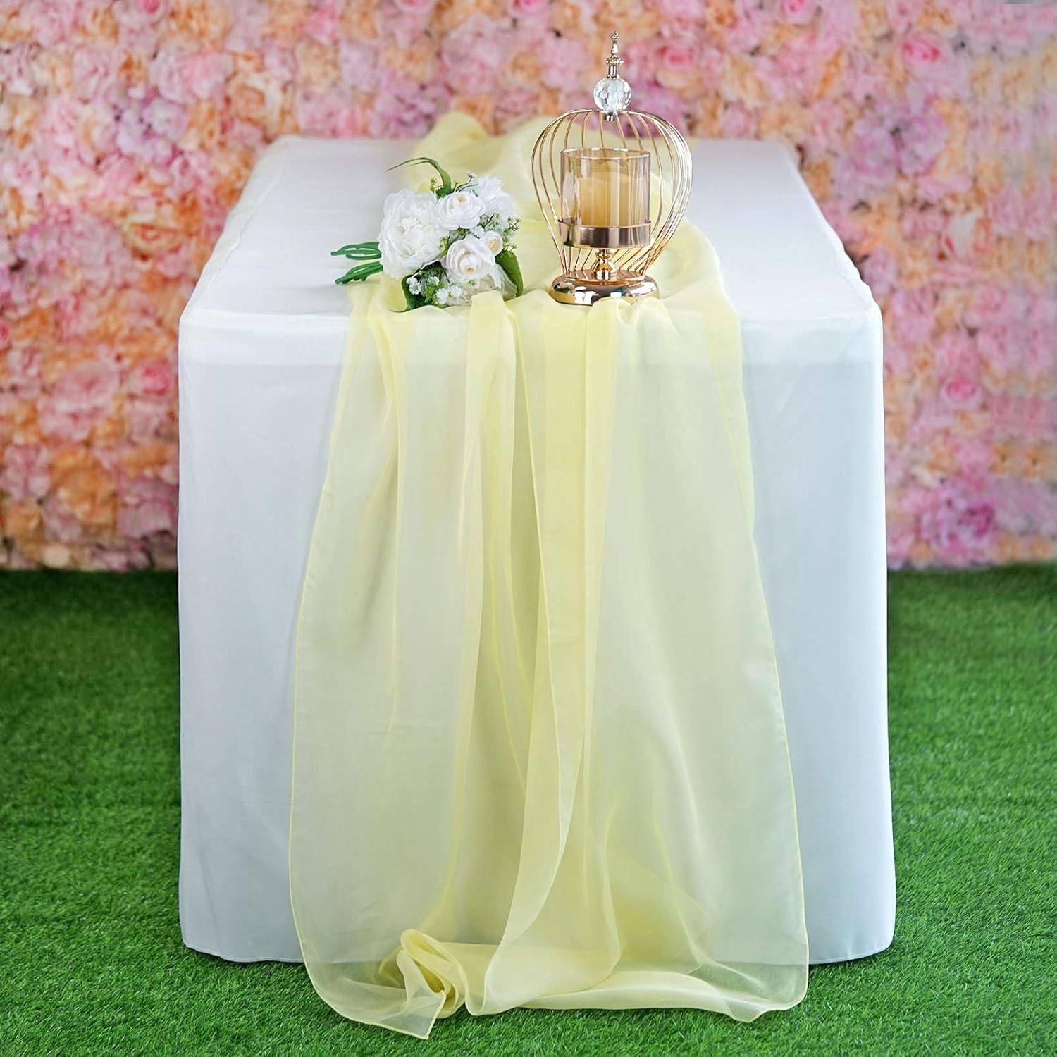 Chiffon Sheer Table Runner are classic staples in weddings that call for timeless, classy and sophisticated touches. Also known as rectangle Chiffon Sheer table overlays, through the years, Chiffon Sheer table toppers have become a darling in country, vintage, shabby-chic and rustic weddings. The floral patterns these Chiffon Sheer table cloths feature add extra elegance to the overall look of your wedding style. A creative table of colors, styles and details add luxury to every event specially if it's set up with a high quality table runners just like our very own elegant Chiffon Table Runner available in 9 colors. Flowing chiffon and silk table runners. Easily add a gorgeous romantic ambiance.High and silk table runners are ideal for you rustic, vintage, and boho wedding or event themes. Table runners give your table settings color, texture and provide feeling of elegance and tradition. They're a great way to dress up your kitchen or dining table and keep things clean. Perfect Decor for Wedding, Romantic Candlelight Dinner, Bridal Shower, Bachelorette Party, Baby Shower, Birthday Party or everyday use Proper Care: Machine wash in laundry bag or hand wash in cold water with mild detergent. Hanging dry, do not twist.