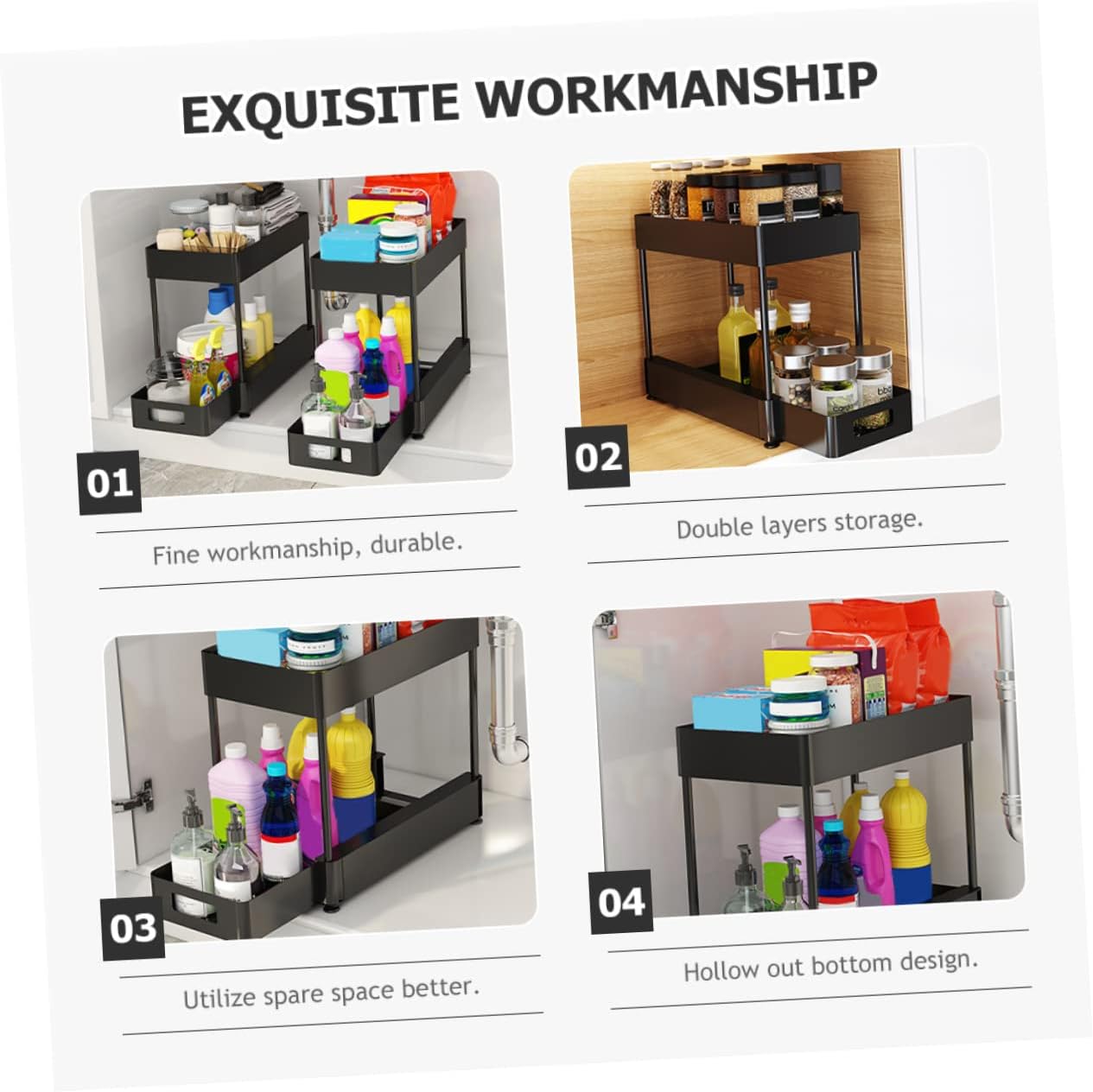 Package Include 1 x under cabinet organizer Features -Color:Black pull-out hanging storage basket -Material:Plastic, carbon steel kitchen storage rack -Size:40.00X33.00X22.00cm/15.72X12.97X8.65in sink organizer - storage rack, which your countertop look more neat and clean under sink storage for bathroom. - The under cabinet organizer provides more space and making it very convenient to use due to its pull out design storage under sink. - 2-tier storage rack organizer, you can easily take items out and you can arrange and store items as you like pull out kitchen storage. - Multifunctional storage holder, it can accommodate different items such as kitchen spice, bathroom toiletries etc bathroom storage under sink. - Chic in look, simple and in use, give you a pleasant using experience pull out cabinet shelf.Goods Informationunder sink storage kitchen Easy to install and use, it can be easily applied to your home, a very accessory that will meet your needs well.pull-out hanging storage basket This product is a under sink organizer, which is made of plastic and carbon steel material, with good texture, and