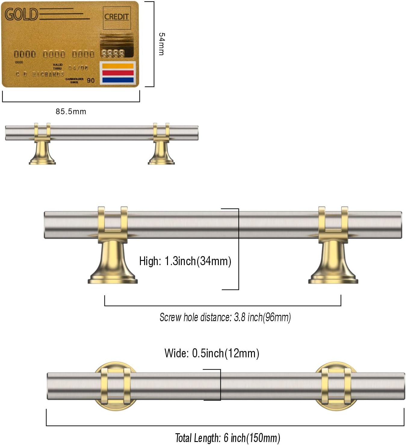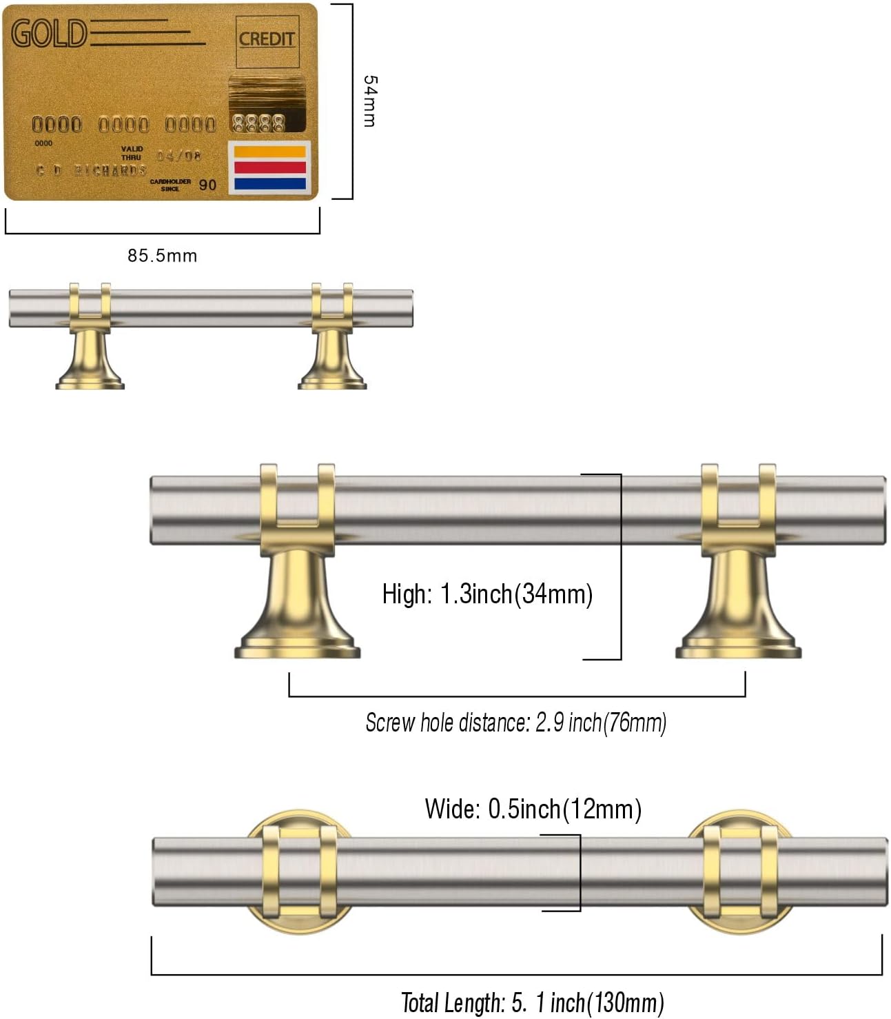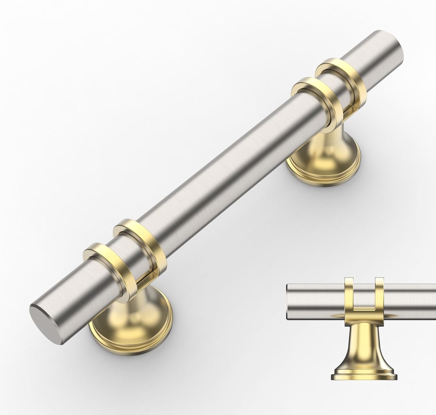Amerdeco 10 Pack Brushed Satin Nickel and Gold Cabinet Pulls 5 Inch(128MM) Hole Centers Kitchen Cabinet Handles Cabinets Hardware Drawer Pulls ZH0058