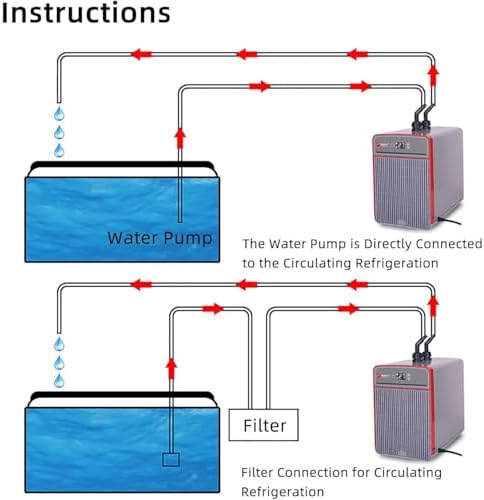 Introducing our innovative compact aquarium chiller, designed specifically for small aquariums and hydroponic systems. Utilizing advanced electronic refrigeration technology, this chiller operates efficiently without the need for refrigerants, making it an eco-friendly choice. With the ability to lower water temperatures by 6-10°C, it ensures a stable and comfortable environment for your aquatic life in tanks up to 60 liters. This chiller is perfect for maintaining optimal temperatures, particularly during warmer months or in heated indoor environments. Whether you're caring for tropical fish or delicate aquatic plants, our chiller helps create the ideal climate for growth and health. Enjoy the peace of mind that comes with its quiet operation, producing noise levels below 45 decibels, allowing you to enjoy your aquarium without distractions. Equipped with advanced safety features such as an over-current automatic shutdown protection system and a power-off temperature memory function, this chiller guarantees reliability. In the event of a power interruption, it will resume cooling at your previously set temperature, ensuring your fish and plants remain safe. Key specifications include: - Voltage: 110/220V - Power: 180W - Maximum capacity: 60L - Optimal water volume: 30-50L - Operating sound: 35-45dB - Suitable water flow: 1-3L/min - Compact size: 25*17.5*16cm - Lightweight design: 4 kg Included in the package are the main unit, a 5W water pump, a 2m water pipe, a 1.5m power cord, and an English manual for easy installation and use. For any questions, feel free to reach out—we're committed to responding within 24 hours. Shop with confidence, knowing our return policy has you covered! Experience the difference that a reliable aquarium chiller can make for your aquatic ecosystem.