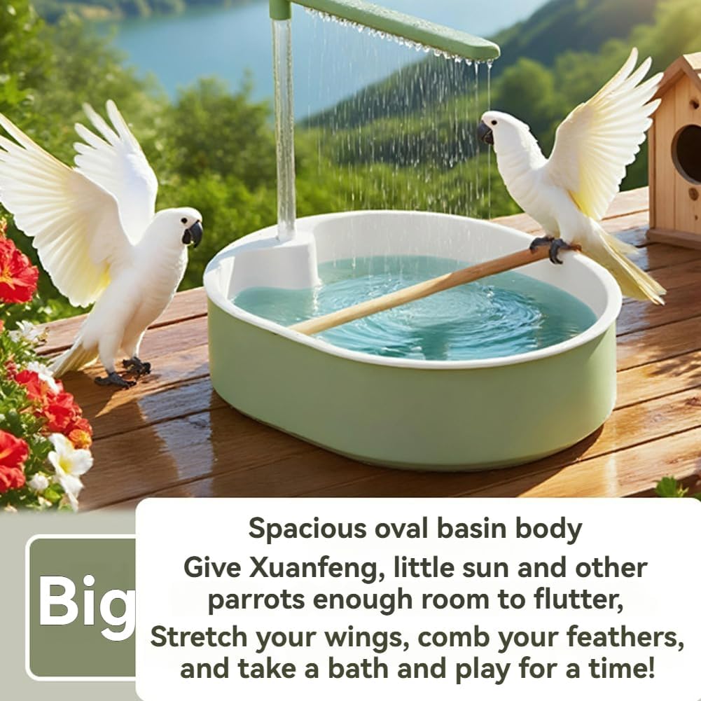 ---------------------------WELCOME TO OUR SHOP ---------------------------Q1: Who is this product for?This automatic bird bath is designed for small pet birds, such as parakeets, cockatiels, conures, budgies, and lovebirds, living in indoor cages.Q2: Can I use it inside a bird cage?Yes, this bird bath is designed for indoor cage use and fits most bird cages, providing a safe place for birds to shower and splash.Q3: Will it help birds that are afraid of bathing?The gentle rain shower and adjustable water flow help shy birds gradually become comfortable bathing.Q4: Is it good for beginner bird owners?Yes, it features a USB pump and tool-free assembly, making it easy for beginners to set up and maintain.Q5: What scenarios can I use it in?It can be used in indoor bird cages for daily bathing, cooling birds in warm weather, and encouraging natural grooming.📝 Product Description:Product material: PP material.Product color: Blue, Gray, and Green.Product weight:1.15IB.Product size:12.52*9.84*3.35in.Package weight:1.39IB.Package size:12.72*10.04*3.54in.📦Package included:Packing List:1*Automatic Parakeet Bird Bath+1*double row green pipe+1*transparent pipe+1*water pump+1*1.5mm beech stick.⚠️Note:There may be slight differences in dimensions due to manual measurements. We kindly ask for your understanding regarding thisThe actual color of the product may appear slightly different from the images due to variations in monitor settings and lighting conditions. We appreciate your understanding💬Our Promise to You:We highly value your feedback and are dedicated to offering friendly and helpful customer service at all timesIf you’re not completely satisfied with your purchase, please reach out to us. We’re here to make things right and ensure you’re happy with your experienceOur goal is to provide you with quality products that bring convenience and joy to your everyday life