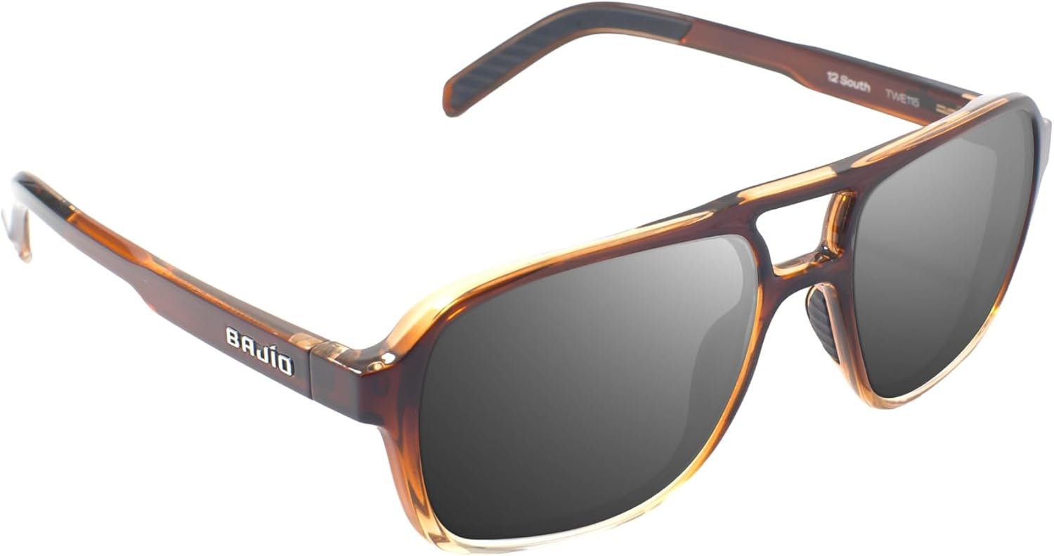 Named for North Carolina’s iconic coastal highway, 12 South embodies the spirit of the Outer Banks—where redfish, rockfish, and laid-back surf culture rule the tides.This large fit, medium wrap frame is made for life on the water, whether you're chasing speckled trout from a skiff or soaking up sun at the beach bar. Its bold, squared pilot shape offers full coverage, with narrow temples and rubberized grips for a secure, all-day fit.Featuring Bajío’s polarized, color enhancing lenses with LAPIS technology, 12 South cuts glare, filters harsh light, and keeps your eyes fresh from first cast to last light.Lightweight and built to move, 12 South delivers serious performance wrapped in surf-inspired style—ready for wherever your day on the coast takes you.