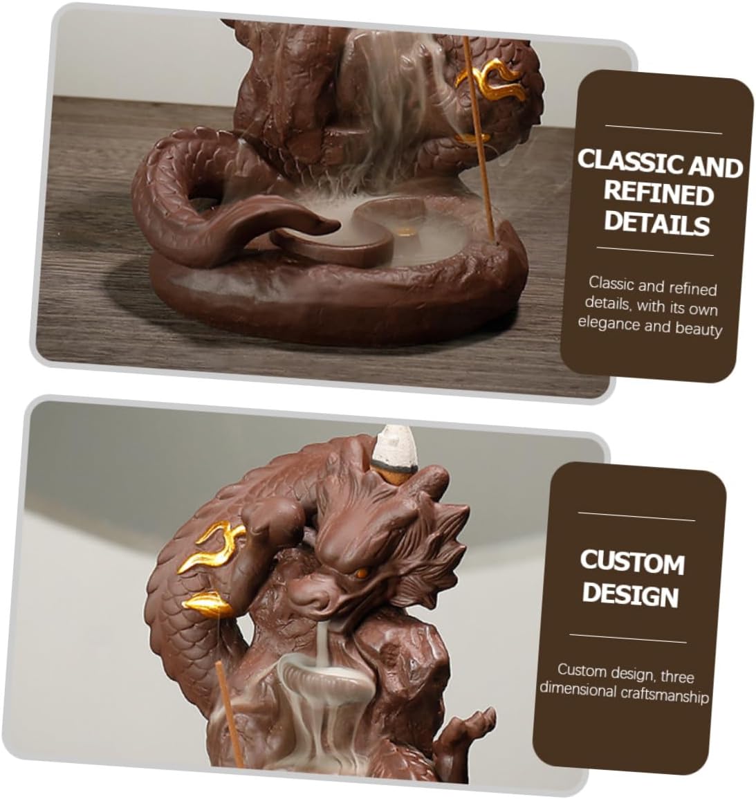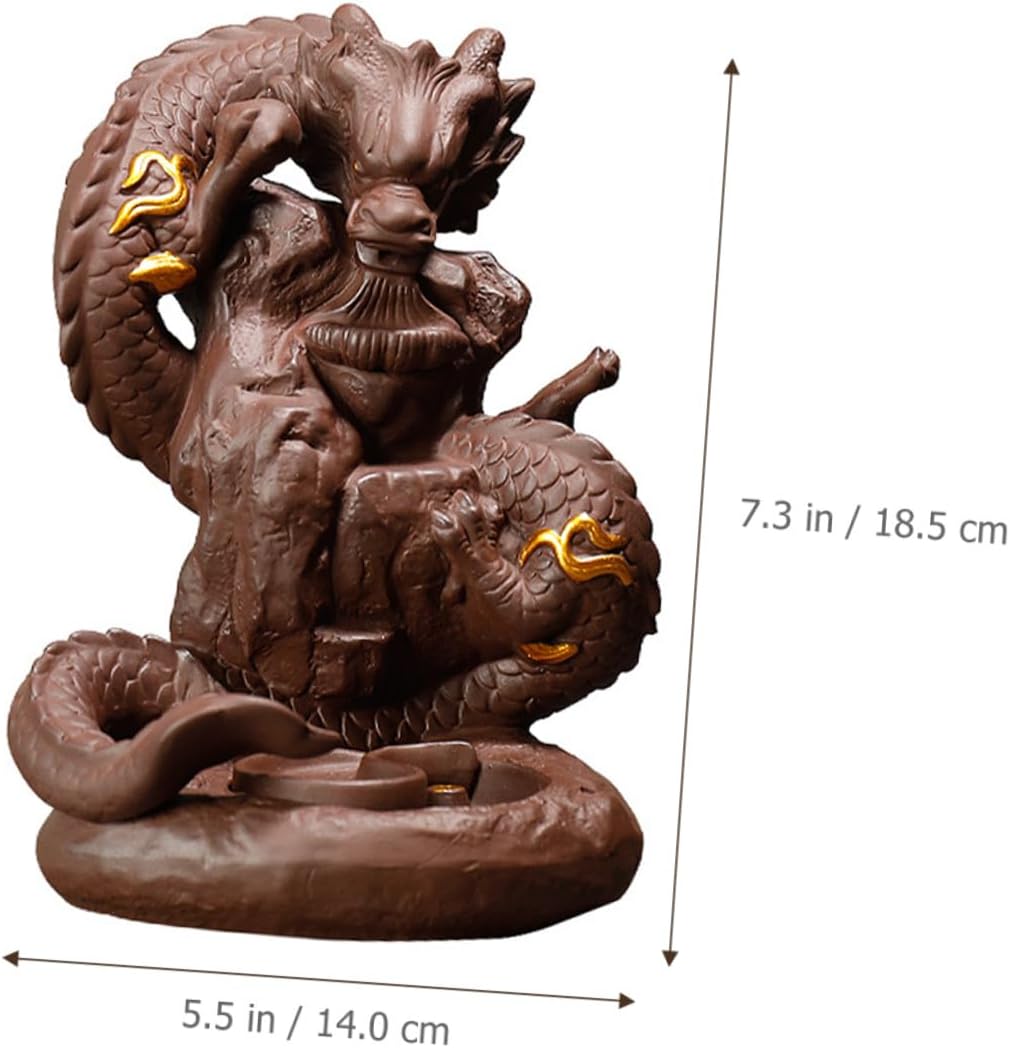 Package List 1 x Backflow Incense Burner Features -Product Info:incense burner -Material: Purple Sands -Color: Brown -Size: About 18.50X14.00X12.00cm/7.27X5.50X4.72in - This incense holder is suitable for all common incense, such US back flow incense cones, incense sticks Backflow Incense Burner. - It is very suitable for aromatherapy and fresh fragrance, you can use with confidence Purple Sand Incense Burner. - With fine workmanship, can be a classical furnishing, with meditation and aid-sleeping effect Decorative Censer. - Can provide a relaxed atmosphere, improving and relieving stress and fatigue Dragon Statue Decor. - Suitable for many scenes like study, bedroom, sauna room, yoga , etc Purple Sand Craft Decor.Goods DescriptionDragon Design Censer Great for living room, bedroom, study, office, meditation room, yoga room, hotel, library, etc.Dragon Censer Decor Made of purple sand , designed with creative and shapes.Decorative Censer A necessary art work and to someone who loves eastern accessories