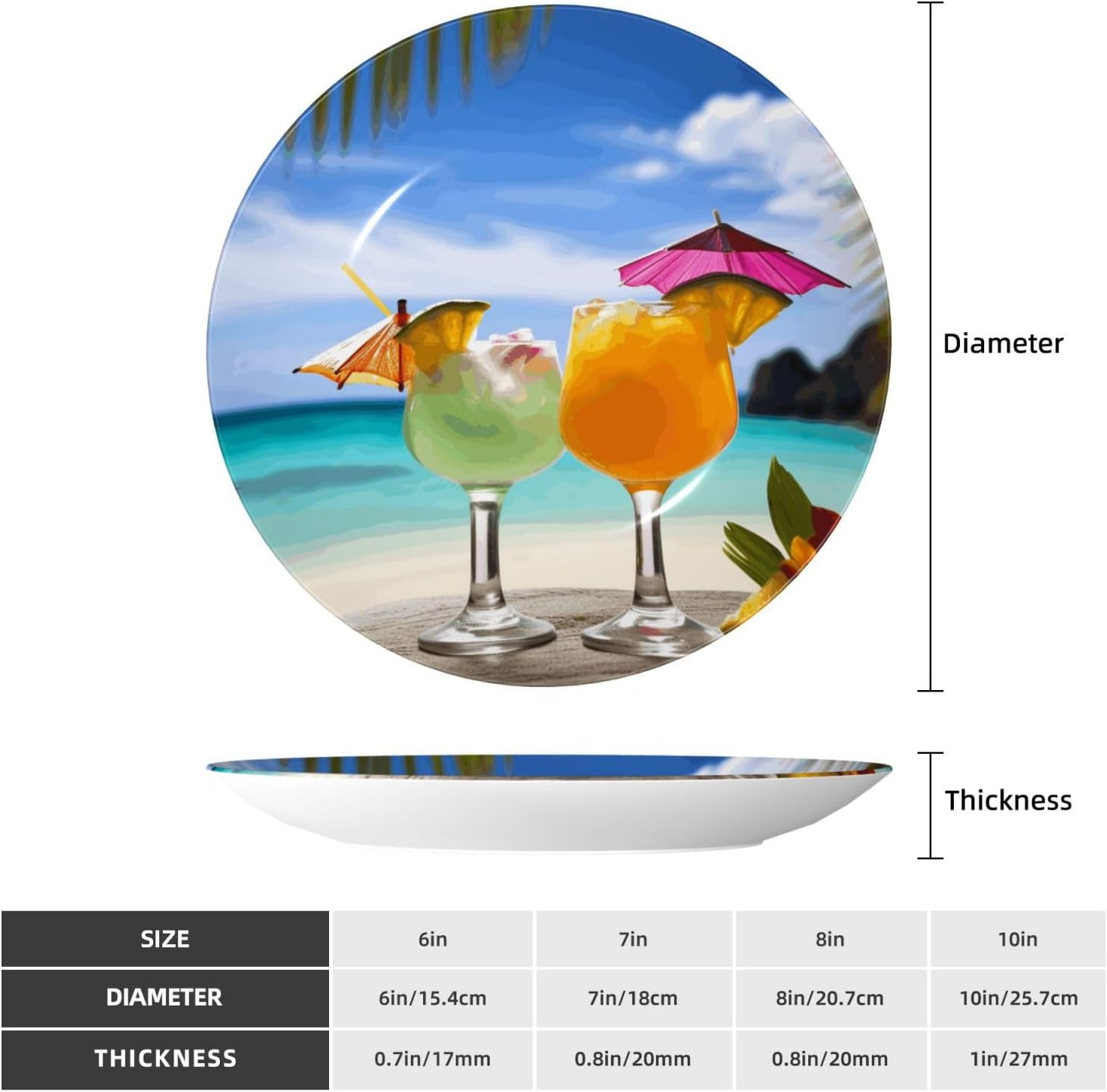 gokays decorative platedo you feel that your table is monotonous? Then use our decorative plate to add a little fun to the monotony of life.featuressize - 6 inch diameter;7 inch diameter;8 inch diameter;10 inch diametermaterial - ceramic design - Tropical beach drink package - 1 x ceramic decorative plate, 1 x stand, 1 x pothookwhy choose gokays decorative plates?advantageas manufacturers we follow current trends and bring you the latest home fashion. Salad plates ideal for placement at home or in the office. Traditional porcelain making technology, fine workmanship. Ceramic dinner plates is a good gift for family and friends.convenient to useour dinner plates rack for display has 2 ways to use, you can just place the bracket base on a flat surface first, and then put the plate on it, also you can stick the provided pothook at the back of the plate, and then stick the plate on the wall, you can choose the suitable installation method according to the actual situation.occasionour ceramic ornaments salad plates is a perfect decorative and collection for any niche, table, or mantle at your home. Perfect for your office, home, living room, dining room, playroom, kitchen, cafe, study, studio, club, bar, and others.in a surprise for your family and friends!porcelain dessert plates is a perfect gift for any person in your life. You can give it directly to your lover as mother's day gift/father's day gift/birthday gift/christmas gift/valentines day gift/anniversary gift/wedding gift/housewarming gift/new home gift.start with our funny decorative plate, refresh your rooms!