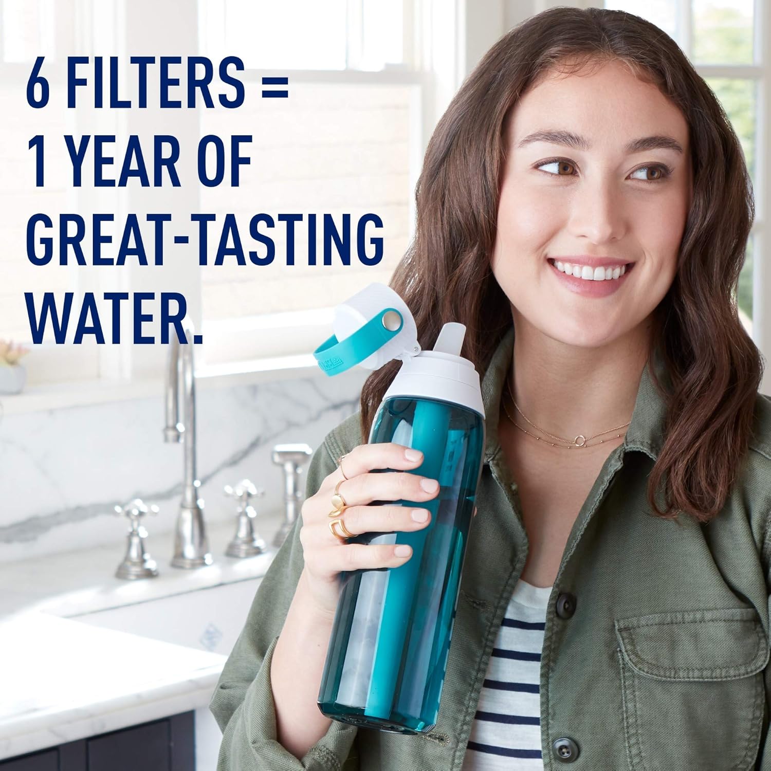Brita Water Filter Bottles, 32 oz, Stainless SteelEnjoy great-tasting water anywhere with the Brita 32 Ounce Stainless Steel Premium Filtering Water Bottle. The durable, double wall insulated bottle stays cold for a full 24 hours. It includes 1 replaceable filter, which reduces Chlorine (taste & odor) as you drink. Featuring an enclosed, easy-sip straw, built-in carrying loop for grab-and-go portability, and one-handed push button lid, this bottle is designed for effortless convenience. The bottle has a leak-proof design to help you avoid surprise drips and spills. Enjoy hassle-free hydration anywhere: at home, the office, a sporting event, or at the gym. One Brita water filter can replace 300 standard 16.9 ounce single-use plastic bottles each year, so you can stay hydrated, save money, and reduce plastic waste. For best results, replace the filter every 40 gallons or about every two months. With Brita, take filtered water anywhere you go!Brita Water Bottle Filter Replacements, 6ctBrita Water Filter Bottle Replacement Filters fit all Brita Hard Sided and Sport Water Bottles. These filters are BPA free and help reduce chlorine taste and odor commonly found in tap water to deliver great tasting water every time. One filter can replace 300 standard 16. 9 ounce plastic bottles resulting in less money spent and less plastic waste. For optimum performance, filter should be replaced every 40 gallons or very two months, whichever comes first. Use Brita for better water, a better world, and better value.