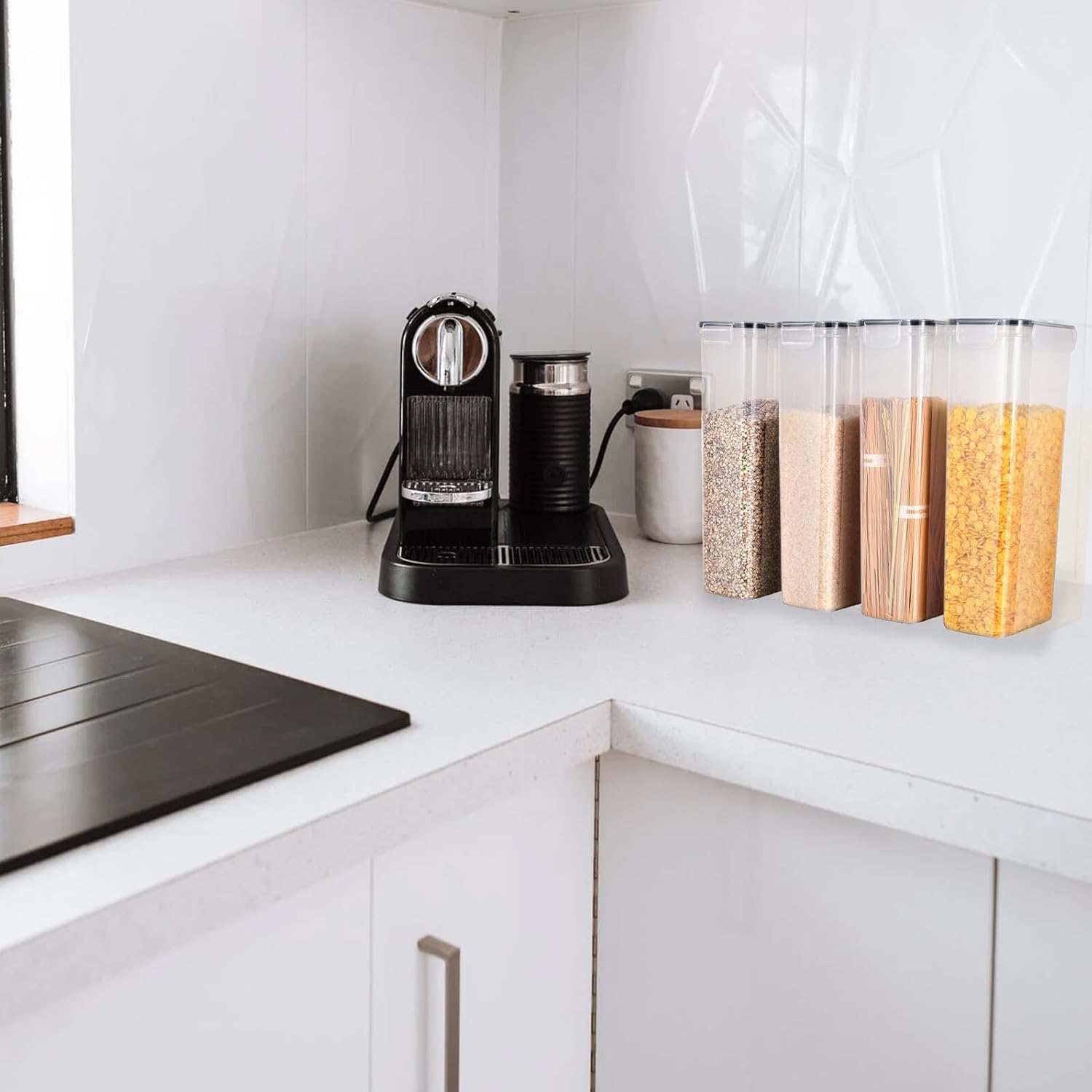 Package List 4 Canisters Characteristics - Material: PP. -Product Info:Sealed storage tank - Color: Transparent. - Size: Approx. 28.50X14.50X10.00cm/11.20X5.70X3.93in. - Capacity: 2.8L Food Containers. - The sealing effect is pretty good, can store your food for a long time Plastic Kitchen Containers. - Absolutely a good storage accessory for households Plastic Airtight Tanks. - You will receive four storage containers to meet your daily storage requirements Household Canisters. - The capacity of each container reaches 2.8L, which is large and practical Storage Canisters. - Perfect for storage whole grains, dry food, cereal, beans, nuts, seasoned, flour, powdered, sugar, coffee bean, or tea leaves Sealing Food Containers.Goods InformationStorage Canisters Are you still worried about not where your food is stored? Are you still worried about the difficulty of storing dry food in the kitchen? So, you miss our storage container set, using PP material of and fine craftsmanship