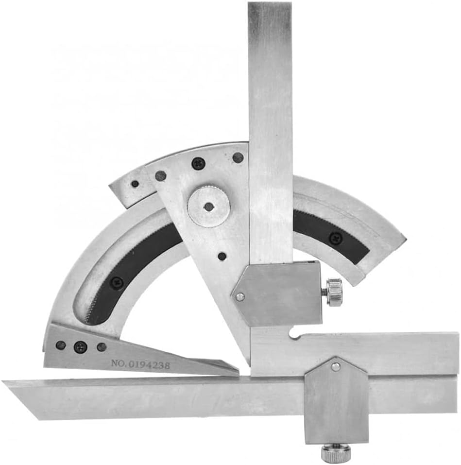 Furnished with a bevel edged extension blade, roller knob and fine adjustment. Measuring range is 0-320 degree. Made of high quality carbon steel, practical and durable in use. With high accuracy of 0.02, and easy to use. Come with a box, so providing protection for the bevel protractor. Specification: Material: carbon steel Measuring range: 0-320 degrees Measuring accuracy: 0.2 Weight: 526g Package Included: 1*Protractor If you have any questions about the product, please contact me, we will contact you within 24 hours and give you a satisfactory answer. Perfect for diy, engineer, carpentry, woodworking and home use.
