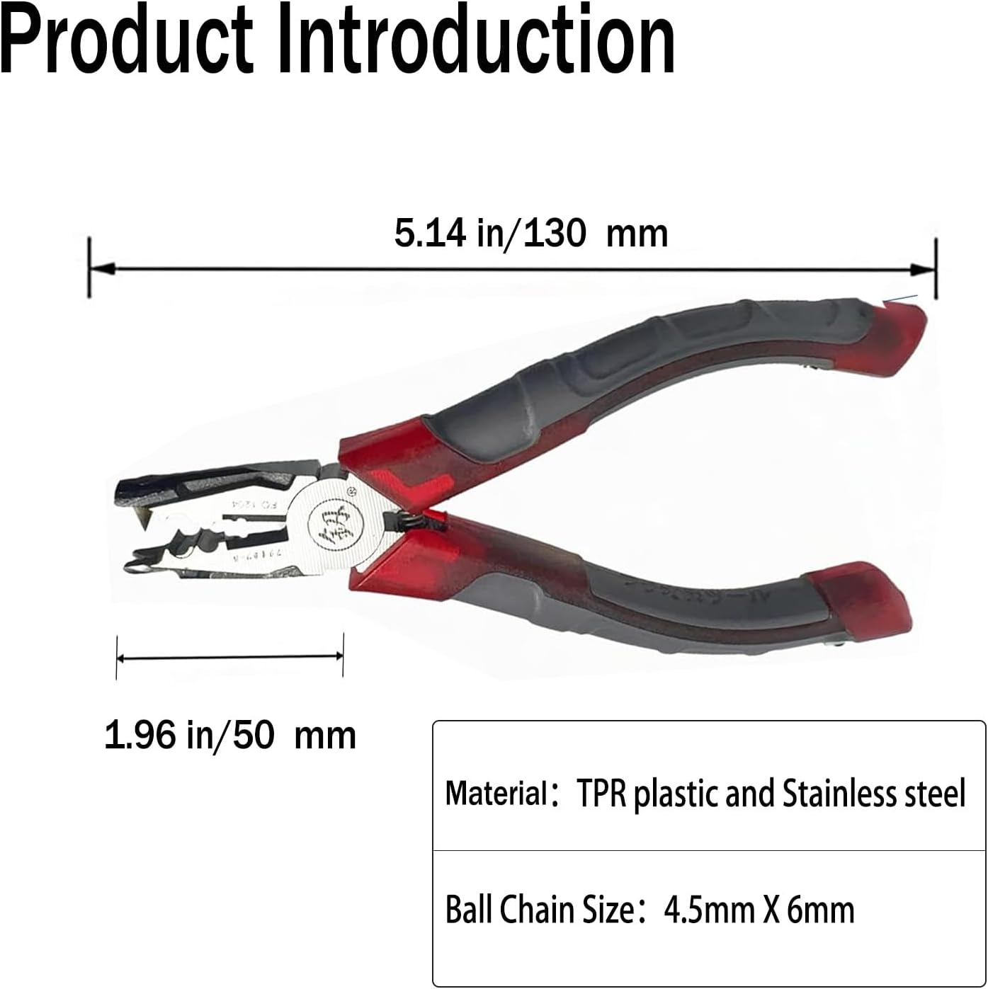 Multi-Functional Bead Chain Pliers Tool – Combines cutting AND joining functions for metal ball chains in one heavy-duty plier. No need for separate tools Application – Suitable for endless rolling ball chains and bead chains. Great tool to repair blind chains Fits #10 Standard Ball Chains – Perfect for repairing or customizing lamp pulls, pet tags, jewelry, and industrial-grade metal links Adjustable Size - Splicing Combination Pliers can be used to cut and adjust the length of chain, open and close the ball chain and bead chain to form a perfect roller blind chain as you desire