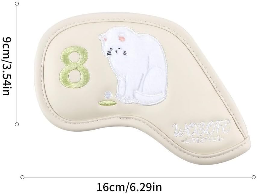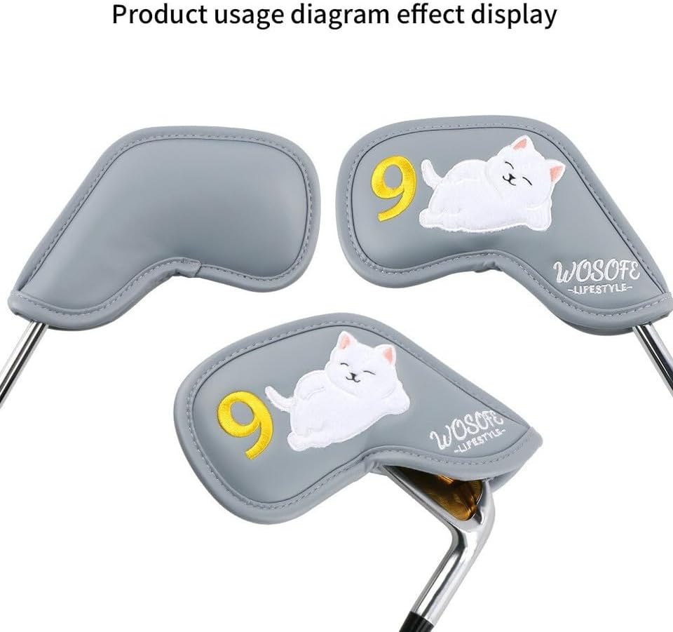 Product Introduction: Golf Iron Head Covers Cute Cat-Themed Protection for Your ClubsPremium Material: High-Quality PU + Plush Embroidery: Durable, soft, and wear-resistant for long-lasting use.Adorned with playful cat patterns for a charming, personalized touch.Color Options:Assorted Colors: Mixed hues for quick club identification.Universal Fit: 9 pieces/set, compatible with irons 4-9PAS (fits most brands).Lightweight & Portable: Net Weight: 360g | Gross Weight: 420g (per set).Compact design for easy storage in your golf bag.Practical Functions: Protection: Shields club heads from scratches, dirt, and damage during travel or play.Easy Identification: Assorted colors help you quickly find the right club.Durability: Extends the lifespan of your irons by reducing wear.Style Statement: Adorable cat embroidery adds fun to your golf bag!