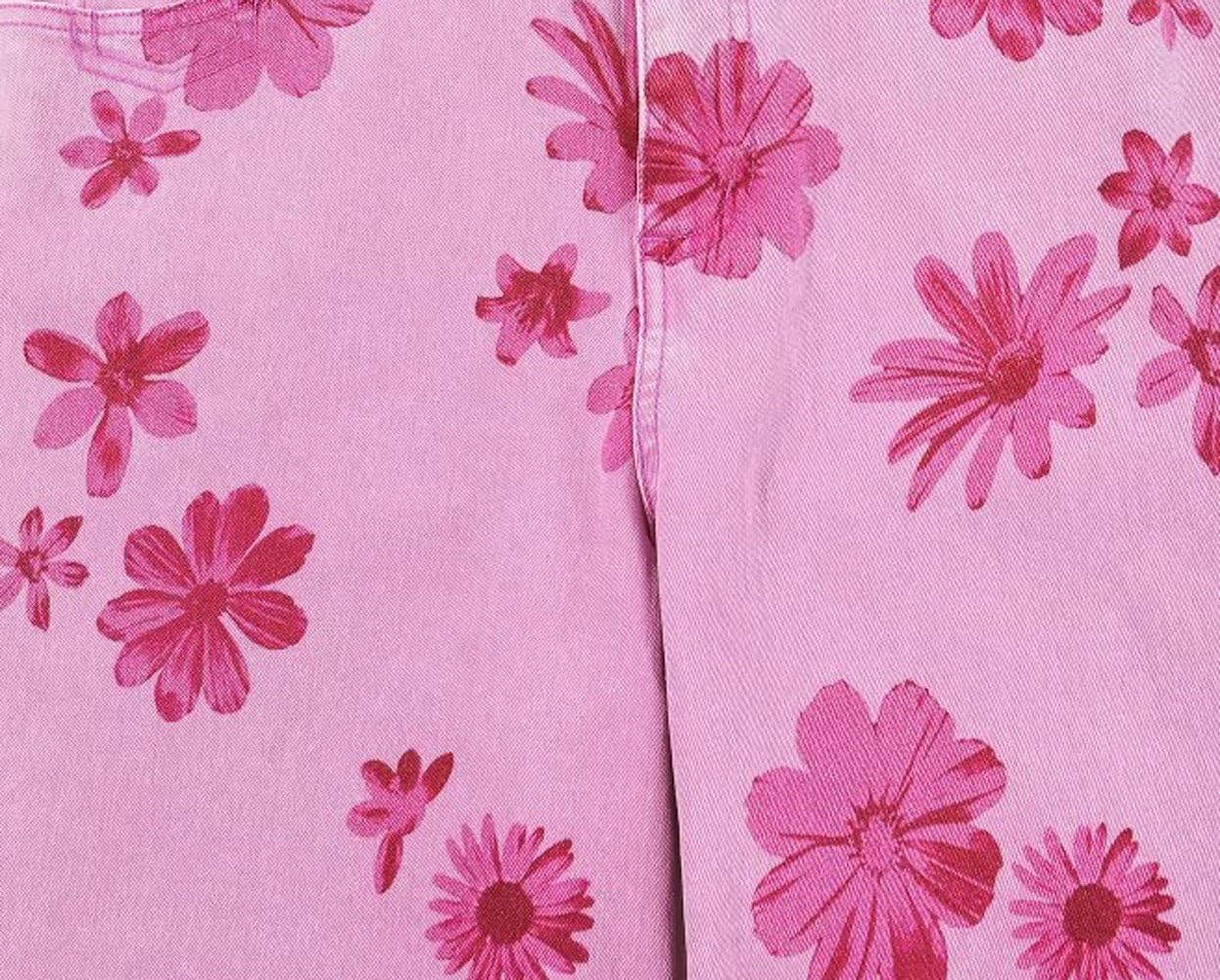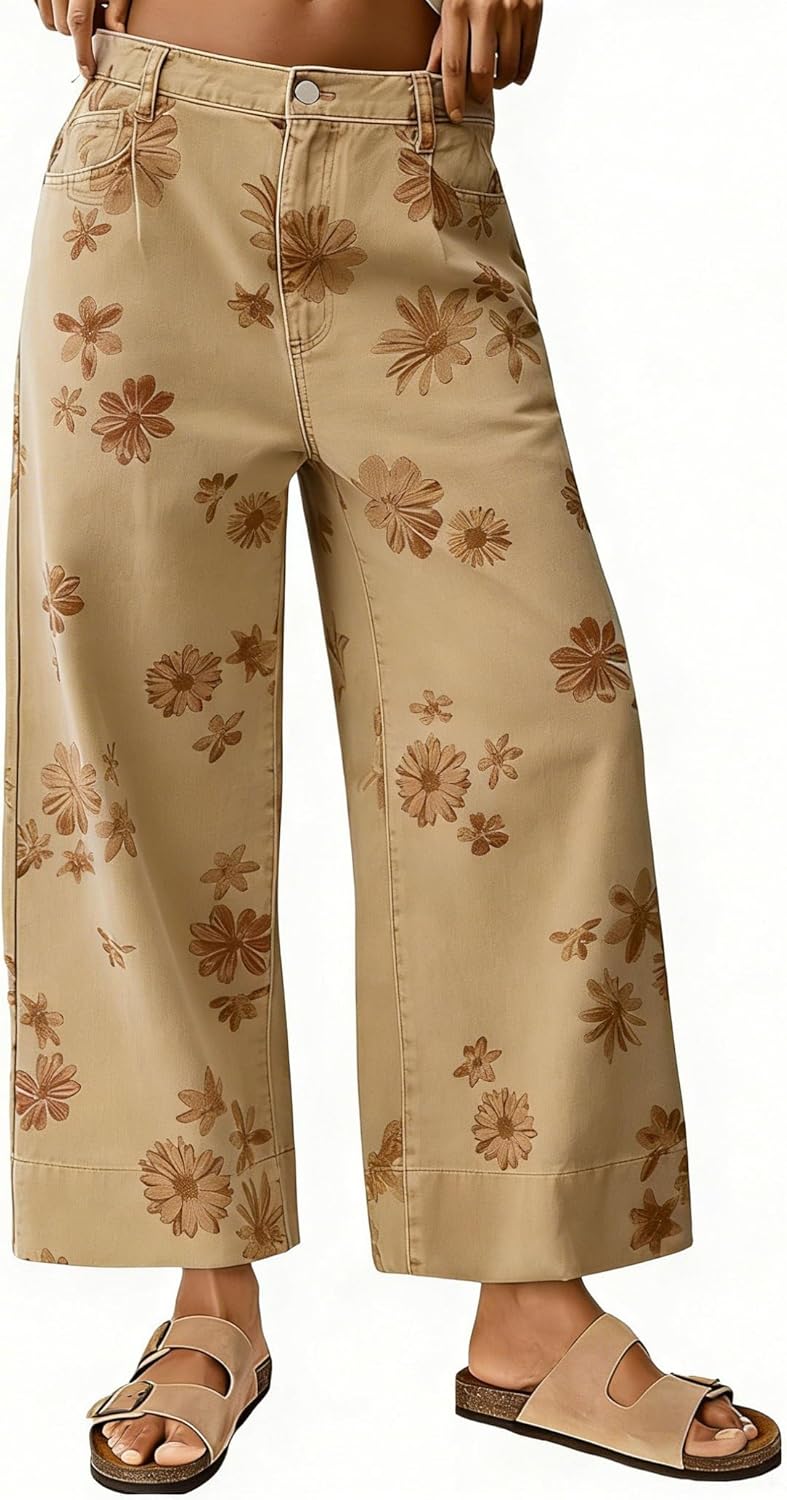 Summer wide leg crop denim pants/ Back elastic casual pants/ Baggy wide leg palazzo pants/ Boho chic floral printed jeans for women