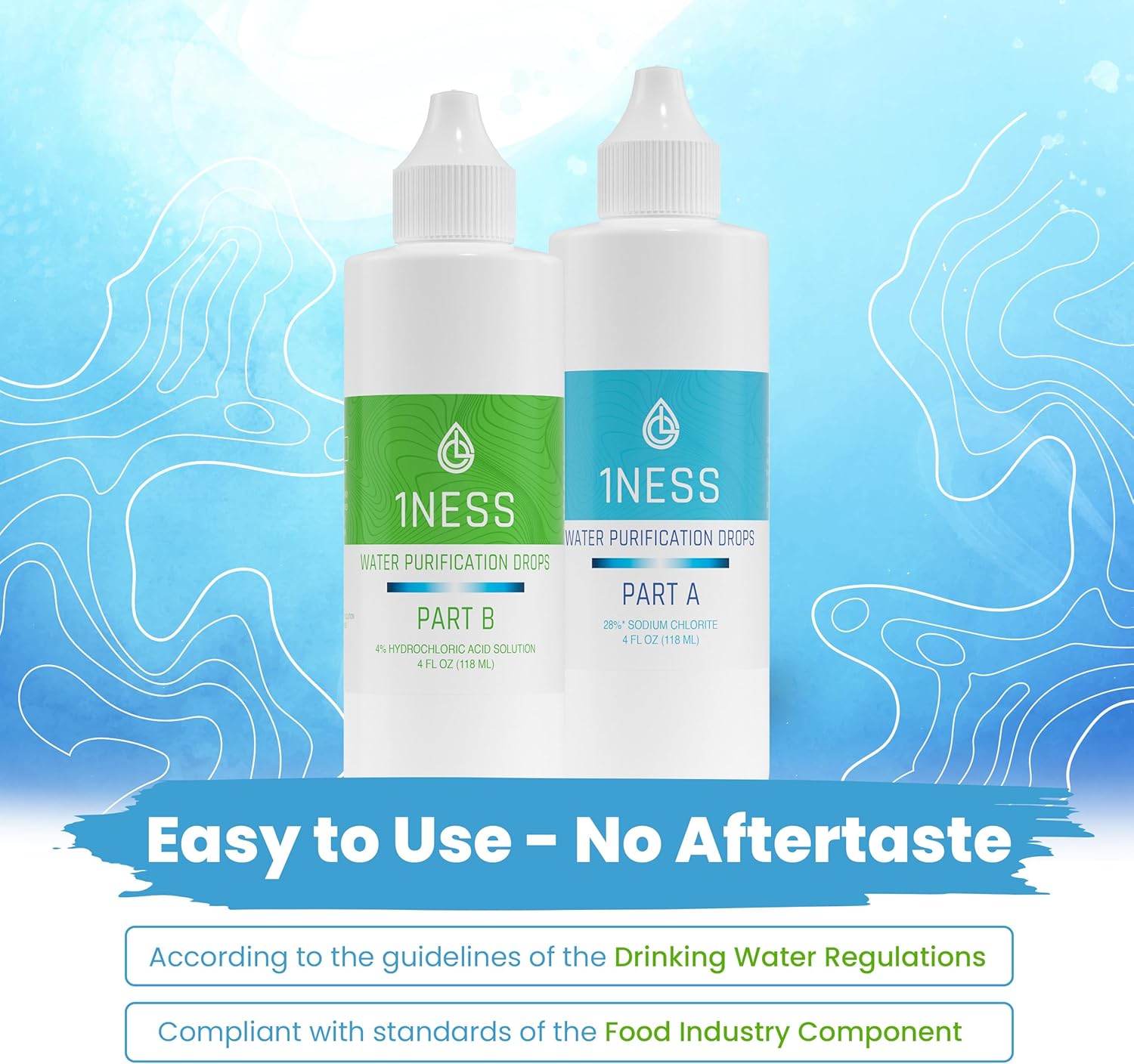 1:1 Set, 1x 2 oz Hydrochloric Acid 5%, 1x 2 oz Sodium Chlorite NaClO2 Set consists of two components This Kit is not intended for human consumption on it's own. It is only meant to treat and purify water. Always read the label and production information before use. Not marketed for internal use. End use is sole responsibility of consumer. In 2010, the FDA issued a warning against using this product in a manner inconsistent with labeling and instructions. Read Here. This product is not intended to diagnose, treat, cure, or prevent any disease.