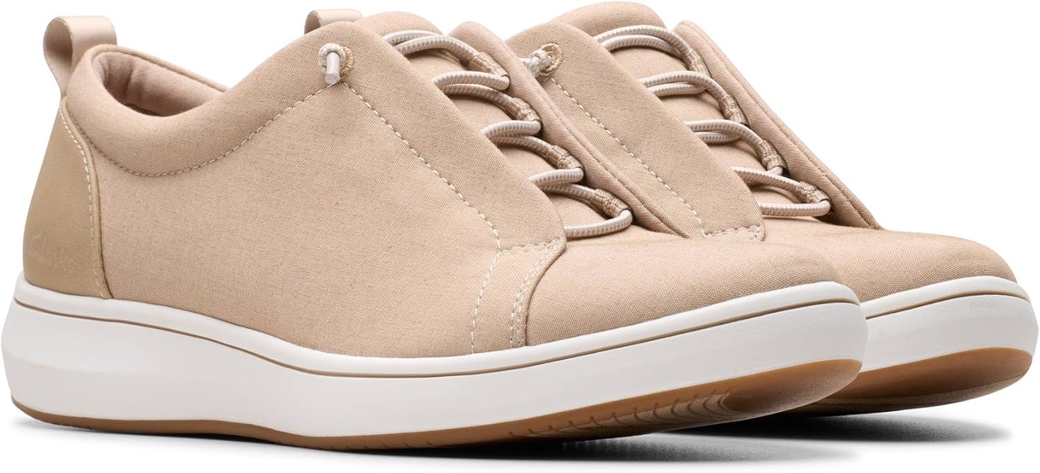 Recharge your soles in BreezeSky Lace, Clarks Cloudsteppers lace-up Cloudstepper expertly crafted for contemporary living. Featuring a super-soft sand textile upper, this lightweight shoe champions a bouncy moulded foam footbed and a flexible outsole elevated by the signature Breeze stripe for an athletic pop of colour. Your ultimate weekday-to-weekend companion. - Super-soft sand textile upper - Smooth jersey lining feels soft against the foot - Signature breeze stripe adds a sporty touch of colour - Authentic lacing with subtle elastic for easy on/off and secure, personalised fit - Removable Cushion Soft™ EVA footbed delivers superior cushioning underfoot - Flexible TPR (thermoplastic rubber) sole supports your natural walking motion and delivers ultimate traction underfoot - Heel height: 40mm