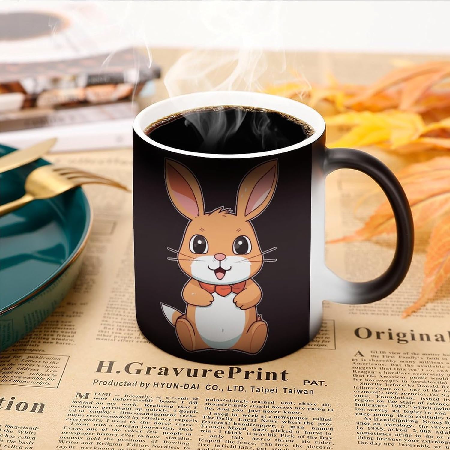 This unique color changing cups is easy to clean, Please scald it with boiling water before using it after receiving it to remove the dust generated during the production process of the cup. It is reusable, Not suitable for dishwashers, only hand wash The Cute Cartoon Rabbit printed reusable color-changing cups are perfect for decorating your kitchen, restaurant or cafe. You can judge whether the coffee is cold by the color of the magic cup, so as to avoid drinking cold coffee