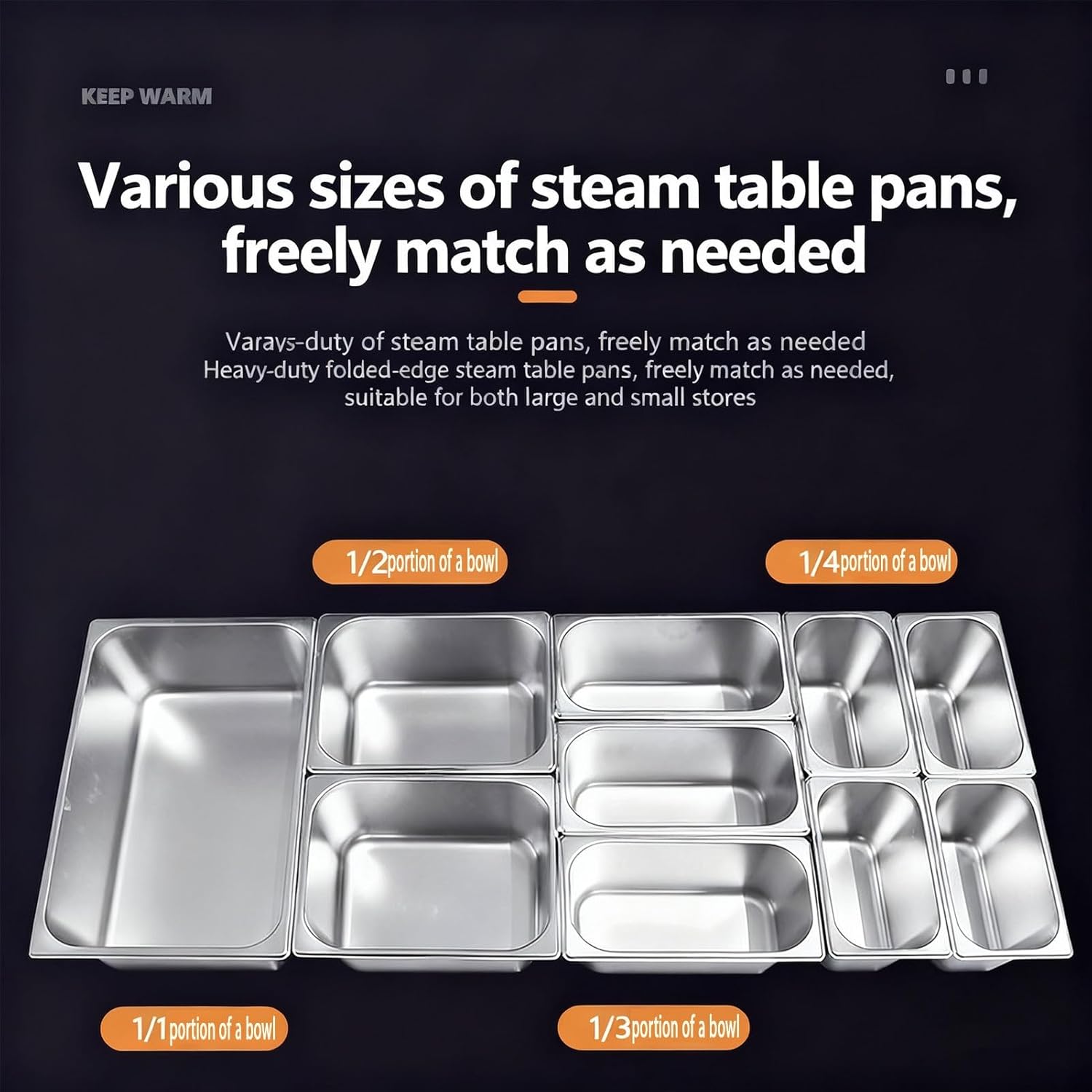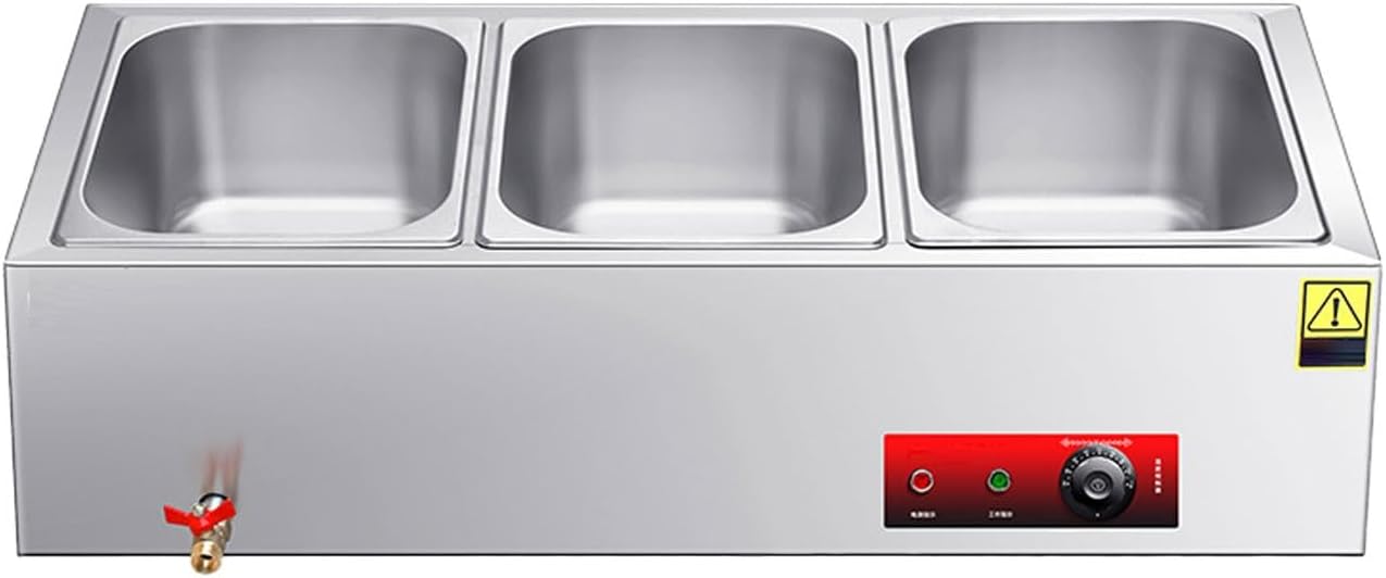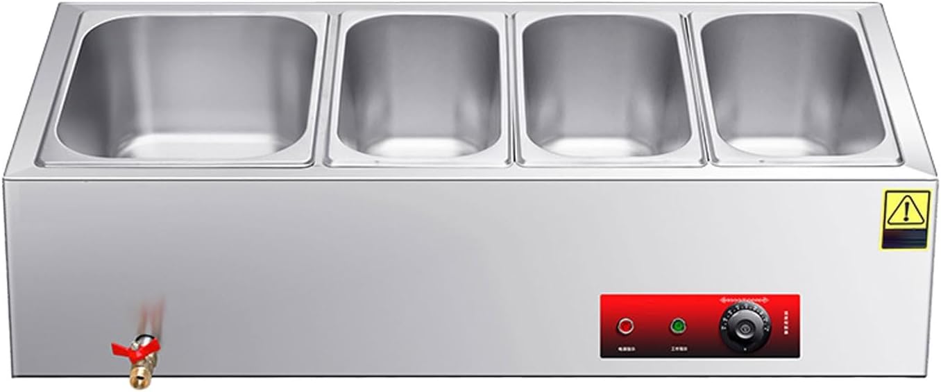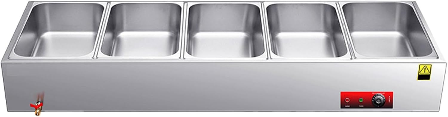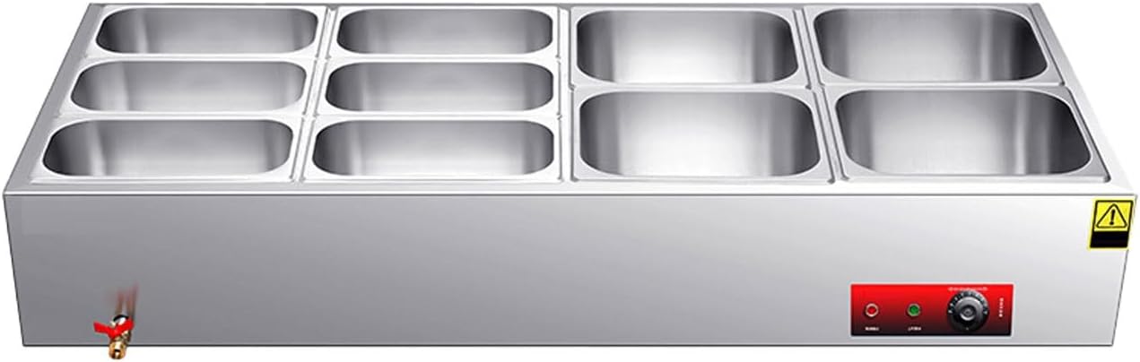 Serve Hot, Fresh, and Flawless Food – Every TimeMeet the commercial food warmer designed to take the stress out of hot holding. Built for real-world demands in restaurants, catering kitchens, buffets, and food halls, this stainless steel steam table combines rapid heating, intelligent safety, and versatile serving options—all in one rugged, easy-to-use unit. Whether you're prepping for a lunch rush or a large-scale event, count on consistent heat, dependable performance, and effortless operation.🔹 10-Second Rapid Heating | Precision Temperature ControlNo more waiting. A high-performance 2000W heating tube delivers steam in just 10 seconds, so you’re always ready to serve. With a broad temperature range from 86°F to 230°F and a reliable mechanical thermostat, your food—whether soups, sauces, or entrees—stays perfectly warmed, moist, and fresh for hours.🔹 Dual Anti-Dry Burn Protection | Built to LastSafety first, always. An automatic temperature sensor shuts the unit off if water runs low, while a clear water window lets you monitor levels at a glance. Made from heavy-duty, stain-resistant stainless steel, the inner tank stands up to daily commercial use and cleans easily, giving you lasting hygiene and peace of mind.🔹 Interchangeable Food Pans | Fully Adaptable SetupCustomize your serving station with included standard-size pans (1/1, 1/2, 1/3, 1/4, 1/6). Fit multiple dishes at once—perfect for varied menus, portion control, and space-saving layouts. Ideal for cafeterias, food trucks, hotels, and catering companies looking to serve more with less clutter.🔹 Thoughtful Design | Easy to Use & MaintainWe built convenience into every detail:Smooth-flow copper drain valve for fast water changesMirror-finish interior wipes clean in secondsHeavy-duty power cord and user-friendly temperature knobSet your heat and on your service—it’s that simple.🔹 Ready-to-Use Kit + Industry-Leading WarrantyWe include everything you need to start: stainless steel soup spoon, skimmer, food tongs, plumber’s tape, and a backup copper drain valve—all at no extra cost. And with a 10-year base warranty + 1-year extended coverage, your investment is secured for the long run.🎯 Ready to Elevate Your Food Service?Stop compromising on food temperature, safety, or efficiency. This commercial food warmer delivers the speed, safety, and flexibility your business deserves—backed by a warranty