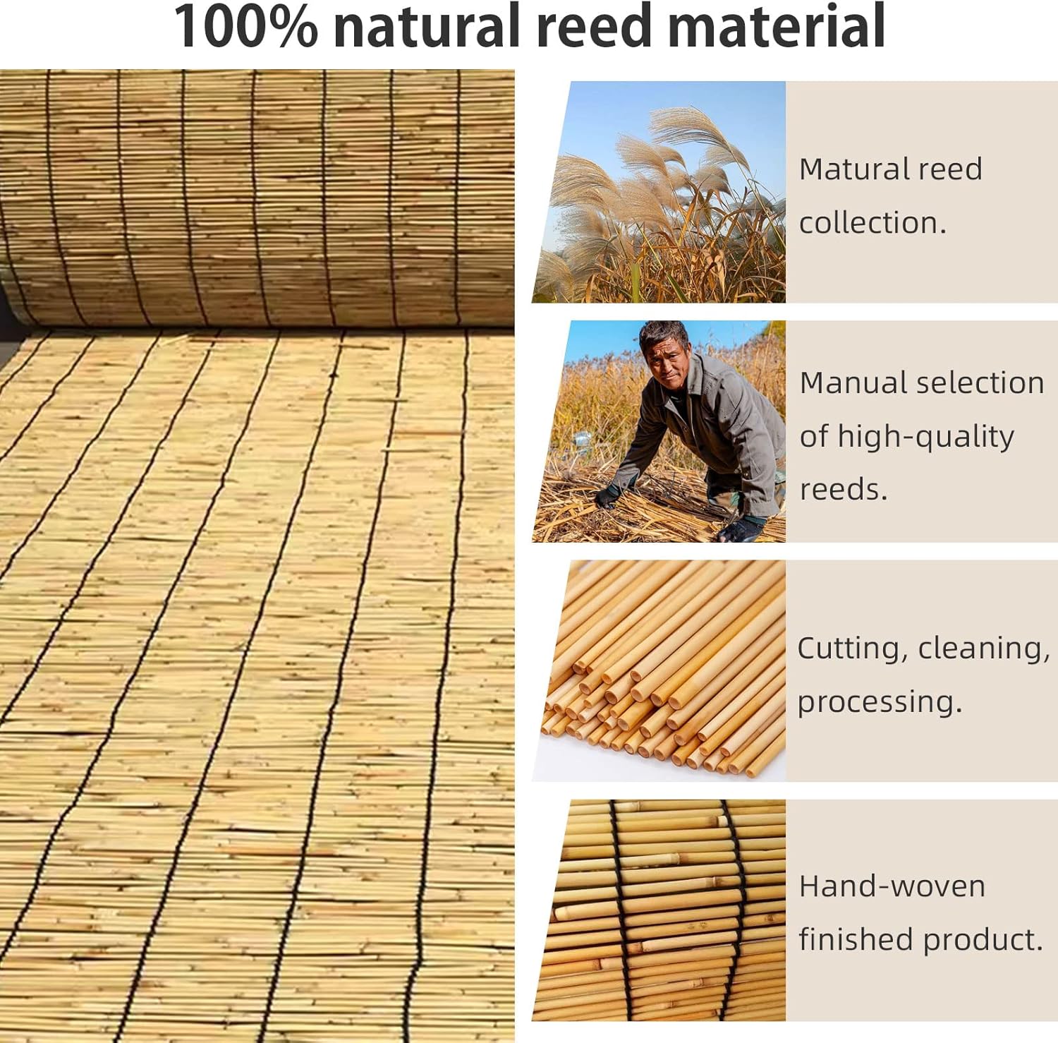 ♦Made of high quality natural reed, this reed curtain is hand-woven and meticulously crafted, with decades of craftsmanship creating irreplaceable craftsmanship.Perfect filtering and ventilation, the soft light through the curtains will give your home a special flavor.♦About the product.Name: bamboo shadesCraft: hand-wovenColor: Carbonized brown, Primary colorApplicable places: living room, dining room, study, office, hall, curtain partition, tea room, coffee shop, wall decoration, curtain, awning, etc.Compliant with child safety standards: Yes♦Package Includes:1×Roller bamboo shades + Accessories♦TIPS:1. Please confirm the size of the bamboo blinds before purchasing. Please allow 1-3cm size deviation and slight color difference.2. We will ship as soon as possible after receiving the order. Please contact us if you have any questions after you receive the item!