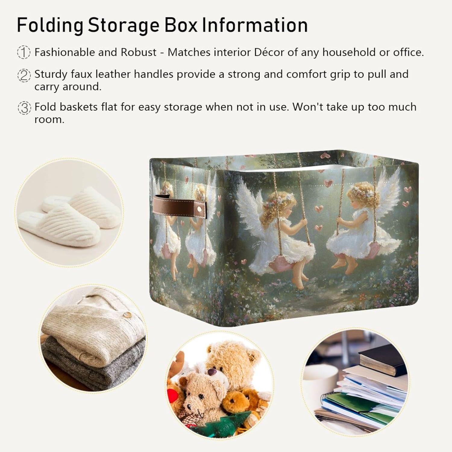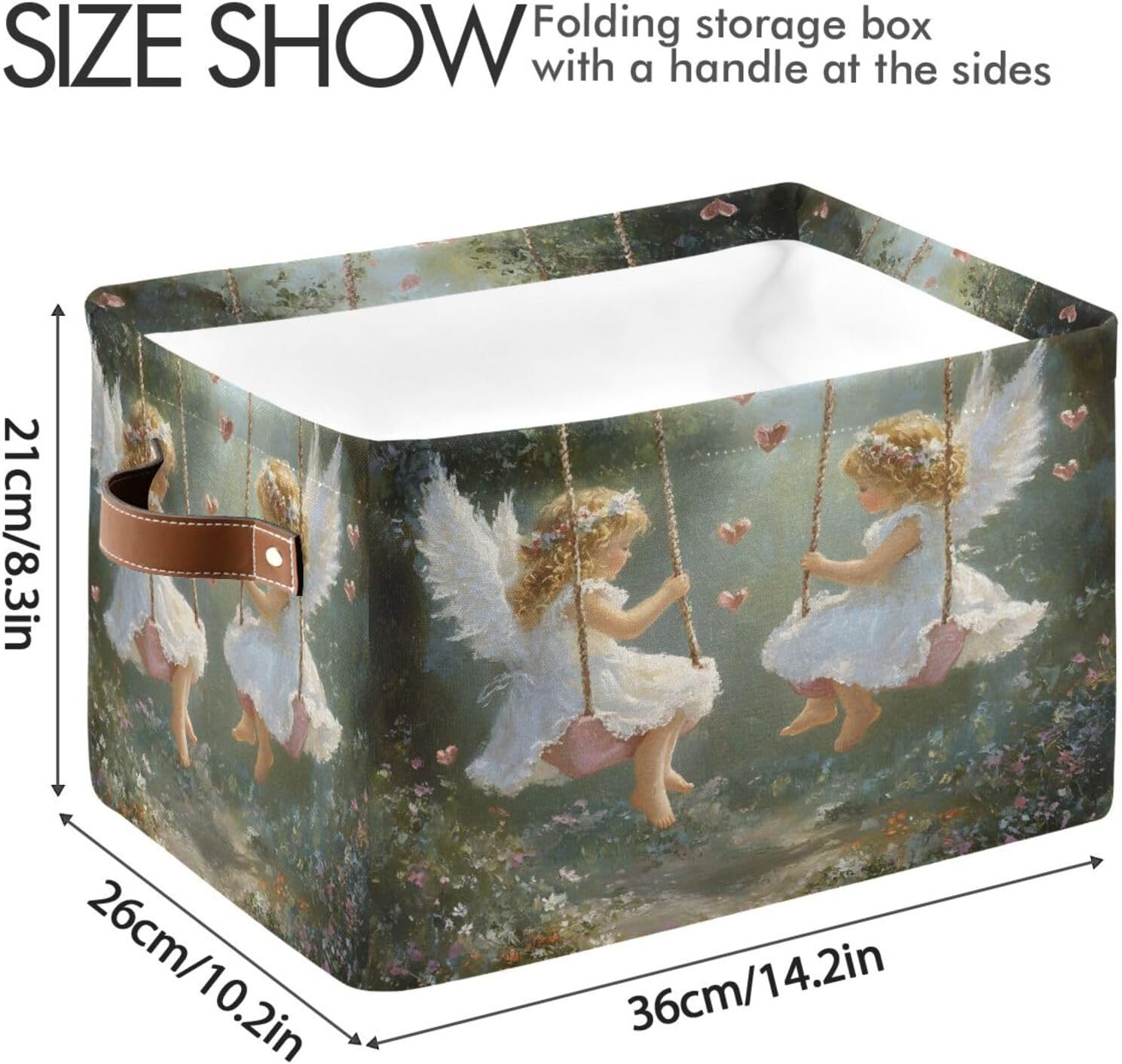 Wassud Storage Bin Specification Material: Outer:canvas Inner:white coated PE fabric handle:PU leather. Size:14.2x10.2x8.3inch (36x26x21cm) Why Choose Our Storage Bin? √ Quality materials Outer canvas, inner 300DPE waterproof fabric, ensure the durability of the storage basket. The built-in steel ring further enhances the stability of the basket and is not easy to deform. √ Beautiful and generous The exquisite print design on the outside and bottom makes this storage basket stand out from the crowd. It can be used as part of a home decor to add a touch of art. √ Easy to clean White coated PE fabric inside, not only convenient for you to view items, but also easy to clean. √ Flexible and versatile Suitable for a variety of scenarios: bedroom, living room, bathroom, car trunk. No matter where you are, this storage basket provides you with a thoughtful storage solution. √ Unlimited creativityYou can use this storage basket as a storage basket, flower pot rack, magazine rack, etc., to play your creativity and make life more colorful.