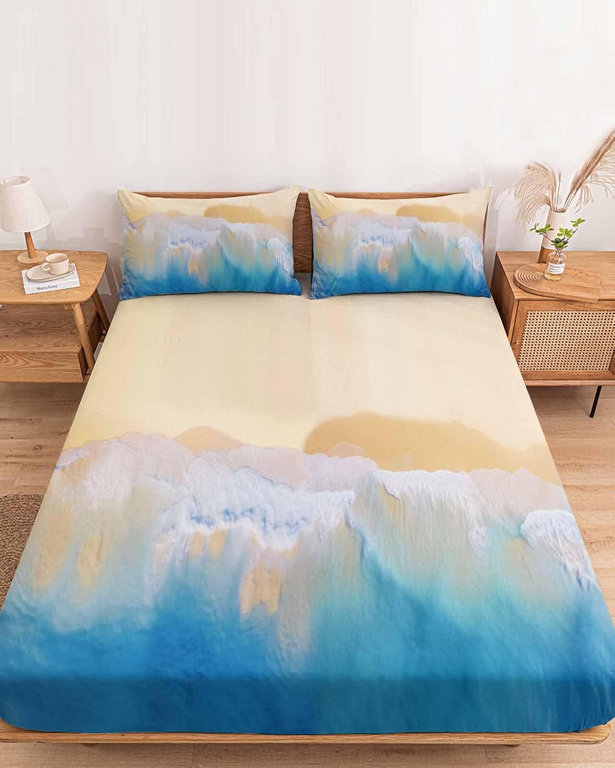❥Perfect Fixation- This deep-pocketed fitted bedspread is stretchy and securely hugs all the way around your large mattress, giving you a comfortable, flawless night's sleep.- If you're looking for a fitted bedsheet for bed that will keep in place all night and won't slide off your bed, then our fitted bedding bottom sheet for home is just what you need. Gets rid of the annoyance of having to tuck your bed accessories sheet back under your bed every morning.❥Superior Quality- Get these fitted sheets for hotel to experience the feel of premium quality bedding. Our bedding sheets are made of high quality brushed polyester fabric material, which give these bed layer sheets extra soft and durable quality, allowing them to withstand repeated washings and provide you with a comfortable feeling for years to come. This breathable fabric is ideal for a restful night's sleep.❥Multiple Styles- Make your dream bedroom a reality with our careful personalized selection of deep-fitted sheets in a wide range of colors, patterns and sizes.- No matter mid century, modern, vintage, farmhouse, minimalist, marine, floral, seasonal or holidays styles, you can find your loved colors and patterns.❥Suitable for All Occasions- The vivid and clear patterns are suitable for various home room designs, and can also be widely used in hotels, homestays, hostels, , RVs, apartments or dormitories, etc. - This luxury fitted bedding spread set is also the perfect gift idea for housewarming, birthday, wedding, anniversaries, Mother's Day, Father's Day, Independence Day, Thanksgiving, Halloween, Christmas.❥Easy Cleaning- Machine washable in cold water. Do not use bleach. The microfiber material is shrinkage and fading proof, extending the life of the bed spread set and keeping it looking good.