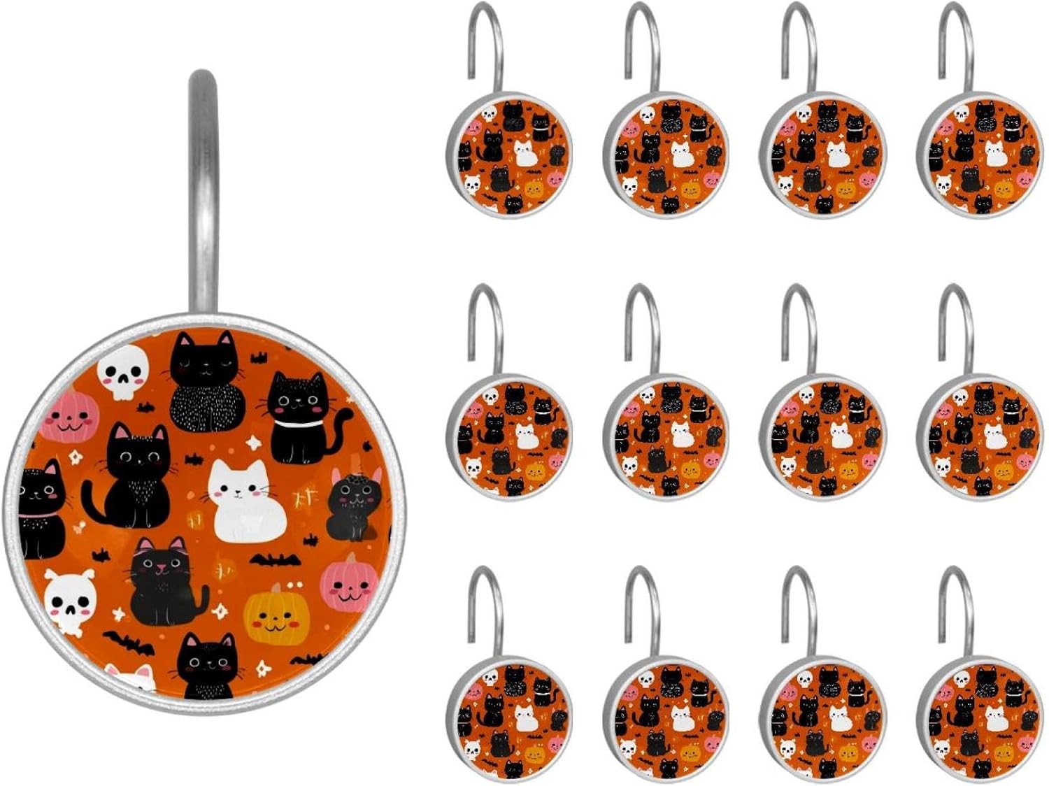 MATERIAL: glass, stainless steel. These shower curtain hooks can be decoration bathroom and will be long-lasting.12 pieces of shower curtain hooks, round crystal glass decoration, printed patterns, silver hooks to match various styles of bathroom shower curtains. SIZE: Crystal glass diameter of round shower curtain hook is 1.45x1.45in/ 3.7x3.7cm. The shower curtain hooks diameter is about 1.1in, 12 pieces shower curtain hooks are suitable for rod of 8-28mm(0.3"-1.1"). RUST RESISTANT:Shower hooks are made of stainless steel and crystal glass, which is durable, rust-proof and corrosion-resistant, it will not rust suitable for wet bathroom environment. EASY TO INSTALL:Hand the shower curtain hooks hold securely on straight or curved shower curtain rods,slid easily and smoothly. Easy to install and decorate your bathroom. BEAUTIFUL AND ELEGANT:Beautiful Love hook add charming scenery for your bathroom, baby room, bedroom, living room, and the gorgeous style is easy to match with any kinds of bathroom shower curtain. EASY GLIDE: Open and close your shower curtain quickly and easily with the Shower Hooks, easily glides on shower curtain rods and tension rods. No snagging; no effort; no hassle PACKAGE: 12 shower curtain hooks in a pack.The bathroom curtain hook has a smooth appearance and can be hung on the pole to pull it at will. Special price 12 sets to meet your needs.