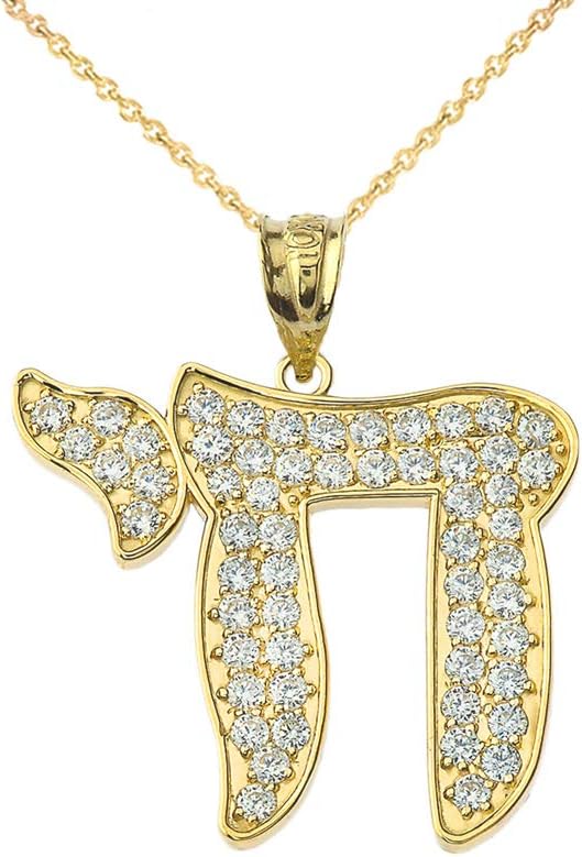 This 14k yellow gold charm pendant necklace features a 55 Diamond accented Hebrew word "Chai", meaning "life" or "living" and is often used as a visual symbol. The Jewish culture focuses on life; loving and celebrating life has been a part of Judaism. The word Chai has a lot of significance for Jews and it symbolizes the value of life and hope that sustains it. It also shows the personal will to live and a reminder to the Jews to live and protect life.Individually hand polished to a lasting high sheen polish finish.This pendant is both of unsurpassed quality and impressive design.