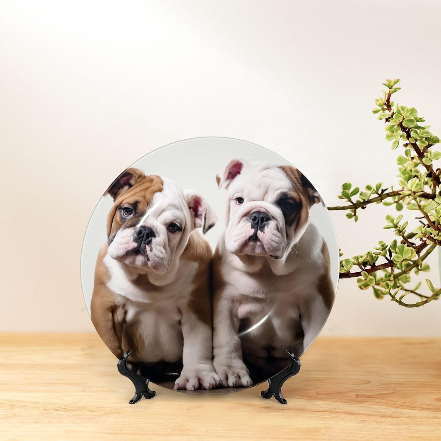 gokays decorative platedo you feel that your table is monotonous? Then use our decorative plate to add a little fun to the monotony of life.featuressize - 6 inch diameter;7 inch diameter;8 inch diameter;10 inch diametermaterial - ceramic design - Two Cute Bulldog Dogs package - 1 x ceramic decorative plate, 1 x stand, 1 x pothookwhy choose gokays decorative plates?advantageas manufacturers we follow current trends and bring you the latest home fashion. Salad plates ideal for placement at home or in the office. Traditional porcelain making technology, fine workmanship. Ceramic dinner plates is a good gift for family and friends.convenient to useour dinner plates rack for display has 2 ways to use, you can just place the bracket base on a flat surface first, and then put the plate on it, also you can stick the provided pothook at the back of the plate, and then stick the plate on the wall, you can choose the suitable installation method according to the actual situation.occasionour ceramic ornaments salad plates is a perfect decorative and collection for any niche, table, or mantle at your home. Perfect for your office, home, living room, dining room, playroom, kitchen, cafe, study, studio, club, bar, and others.in a surprise for your family and friends!porcelain dessert plates is a perfect gift for any person in your life. You can give it directly to your lover as mother's day gift/father's day gift/birthday gift/christmas gift/valentines day gift/anniversary gift/wedding gift/housewarming gift/new home gift.start with our funny decorative plate, refresh your rooms!