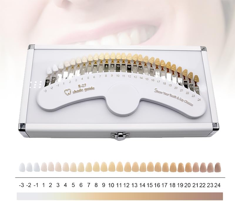 Specification: Type: shade guide Mold Material: Plastic Package Includes: 1 x Teeth Whitening Shade Guide Notes: Please allow the slight color difference caused by the shooting light and 1-5mm error due to manual.