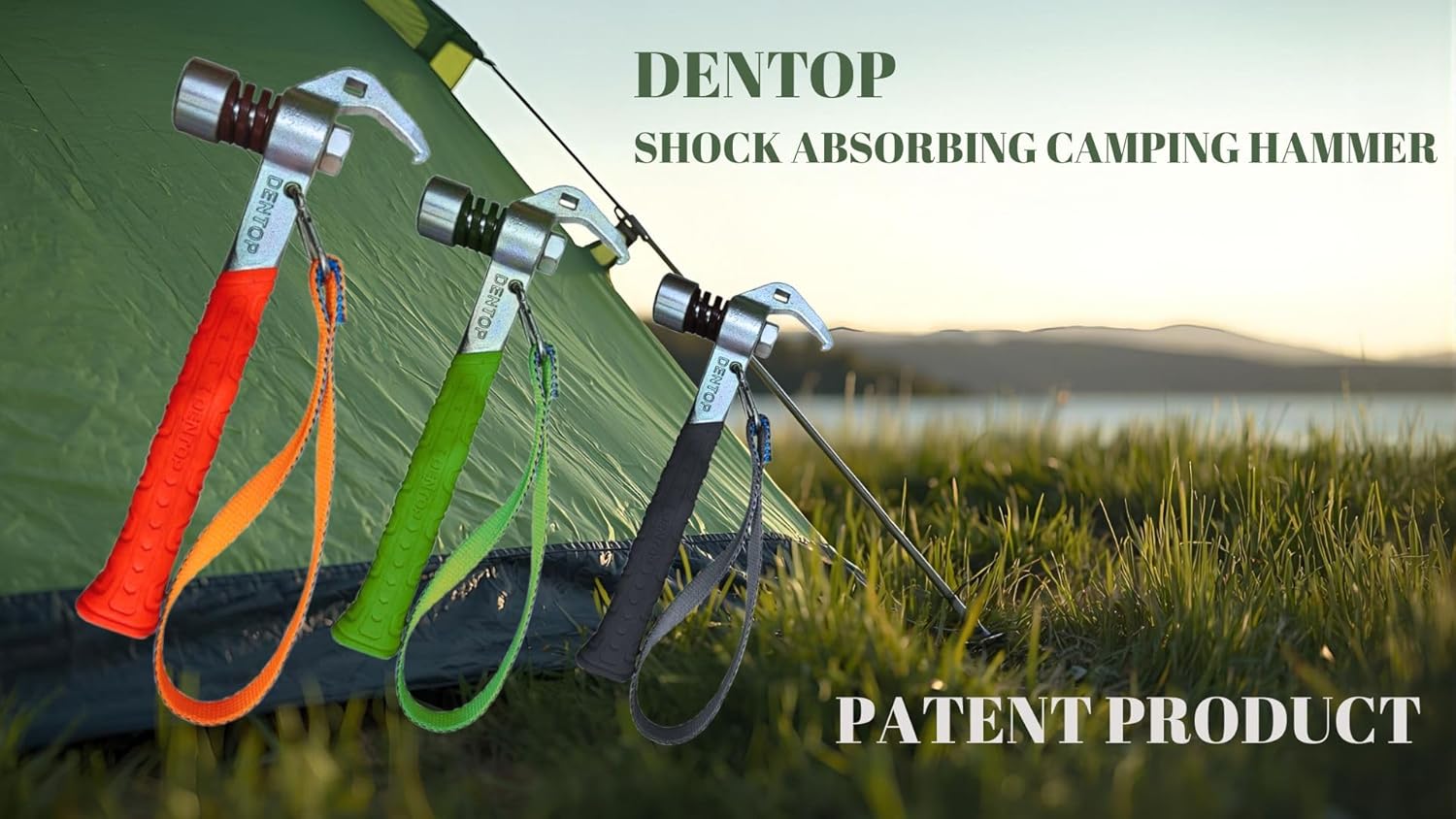 DENTOP shock absorbing camping hammer Engineered with force-limiting and shock-absorbing technology, it makes setting up tents faster and easier, minimizing physical effort while enhancing overall efficiency during outdoor activities. Its wrist strap-style design offers convenient portability and added safety—even if the hammer slips during use, it won’t fall to the ground or risk injuring your foot. Available in three stylish colors, this hammer blends functionality with personal flair, making it an ideal choice for both casual campers and outdoor pros.