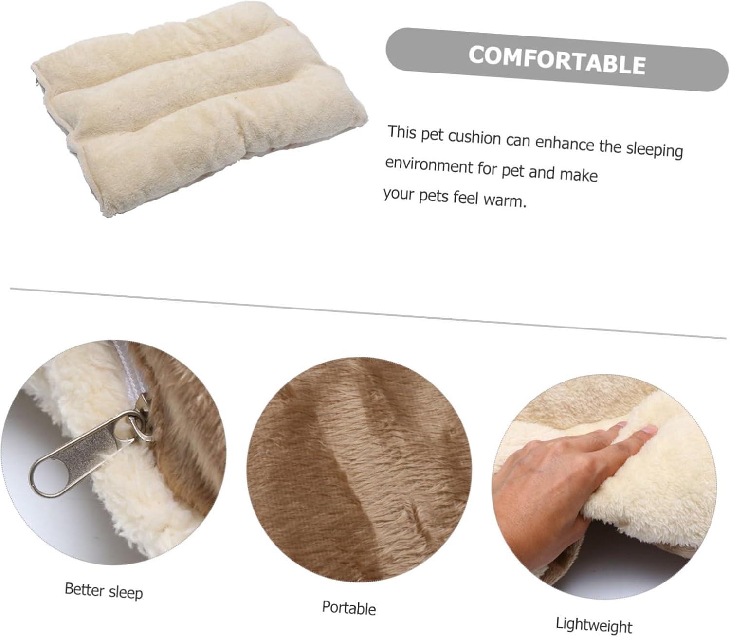 Package Include 1 x Pet Mat Features -Material: Cloth, Plush Universal Pet Bed -Color: Beige Pet Nest -Size: 70.00X50.00X5.00cm/27.51X19.65X1.97in Pet Rest Sleep Mat - mat is suitable for pets in the whole year and many situations to use Pet Pad. - for saving your furniture from unwanted pet hair, scratching Warm Pet Bed. - material make your pet feel comfortable and make them have a nice rest Sleeping Bed for Pet. -You can take this lightweight and compatible pet mat everywhere your pet goes Breathable Pet Mat. -Suitable for all of furniture, especially for sofa and bed. The super and warm pad can surely make you share happy time with your Bed Cushion.Goods DescriptionUniversal Pet Bed Warm and comfortable pad convenient for pets to play, rest, sleep, eat, etc.Home Pet Bed Just pick one and bring it to your lovely pet.Pet Floor Pad This pet cushion is made of material, which is , and for long-lasting use, featuring warm design, suitable for dog nest, cat nest, living room, balcony and other places